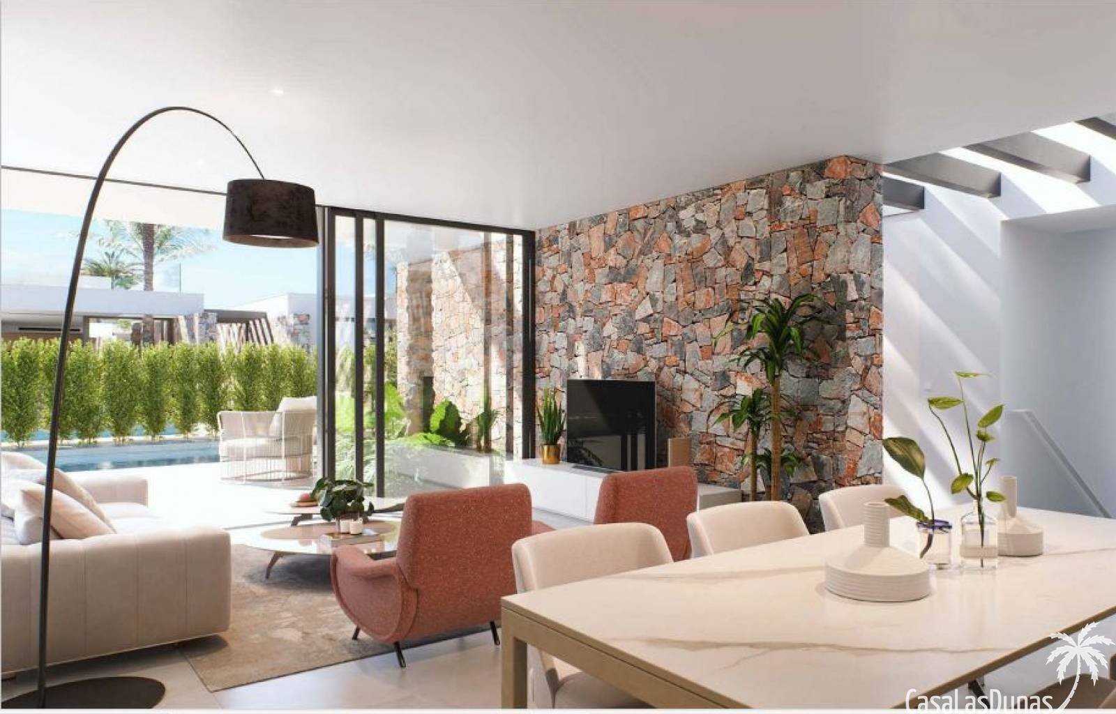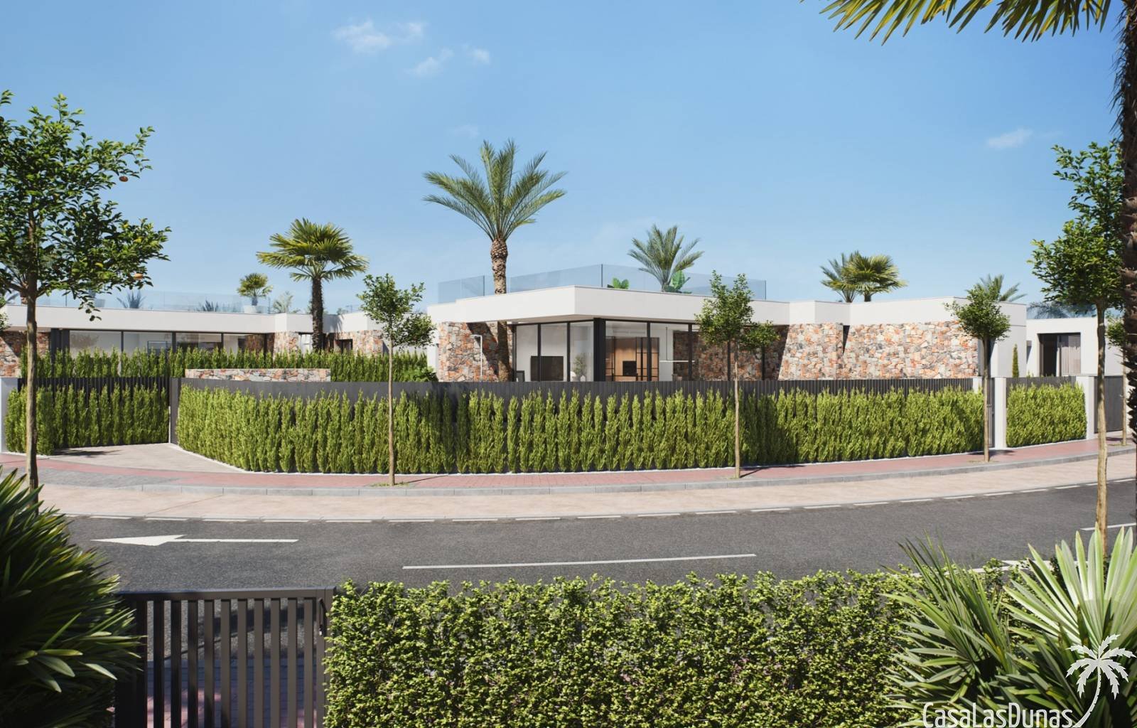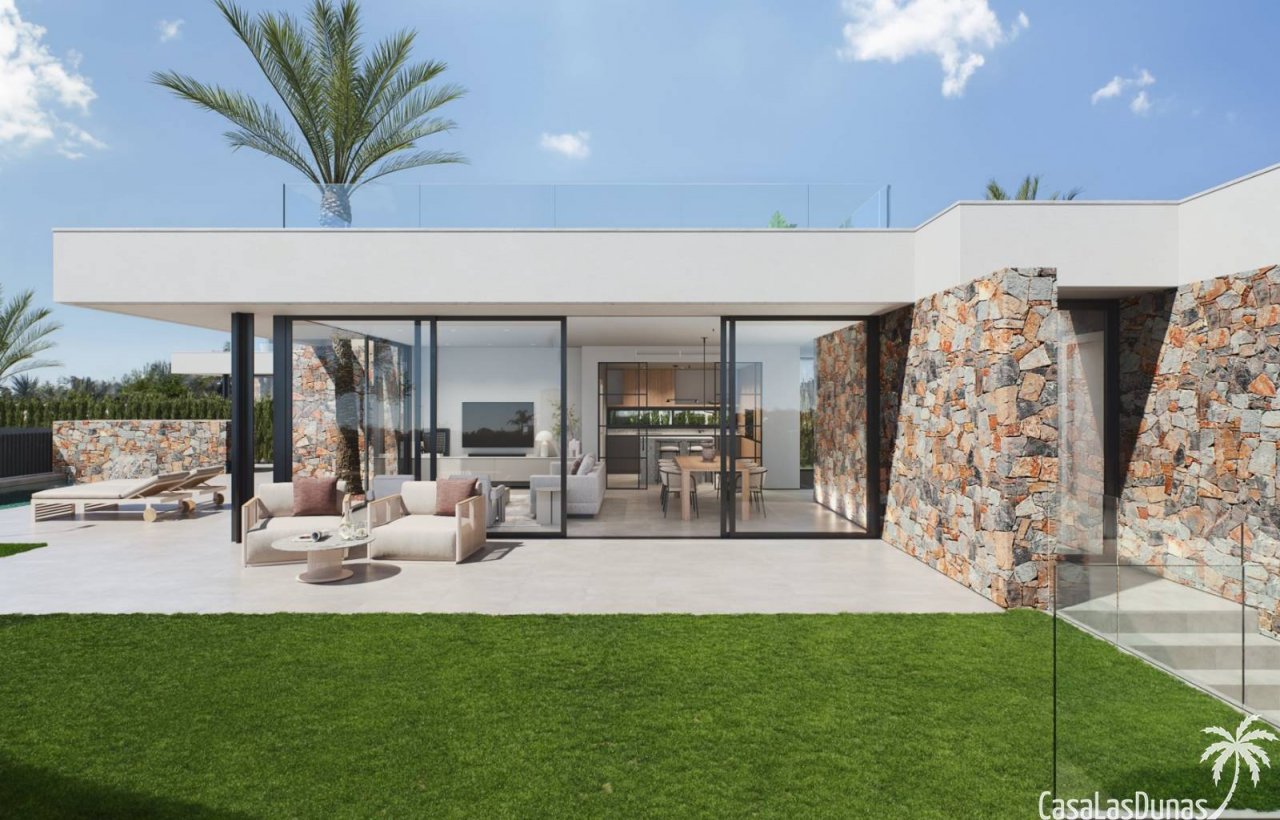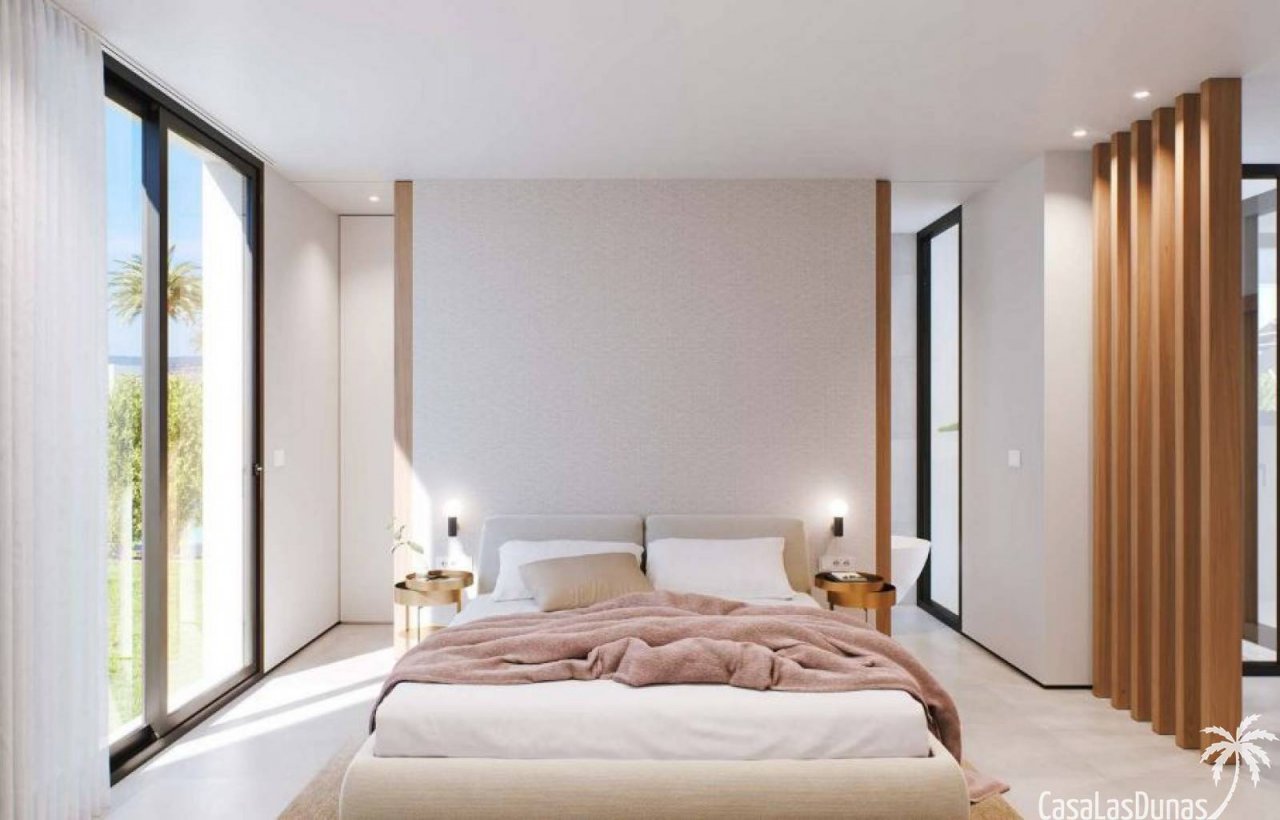 Die Häuser sind mit riesigen Fenstern ausgestattet, sodass Innen- und Außenbereich harmonisch miteinander verschmelzen. Es gibt einen privaten Swimmingpool mit Wasserfall und der gesamte Außenbereich ist mit rutschfesten Fliesen ausgelegt. Auf der Dachterrasse wurde eine Vorinstallation für eine Außenküche, einen Whirlpool und Solarpaneele durchgeführt.…