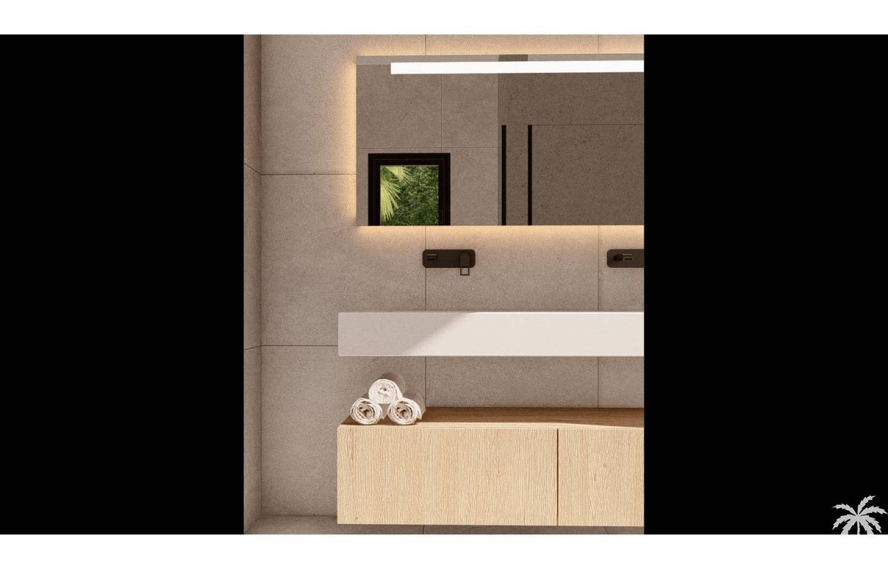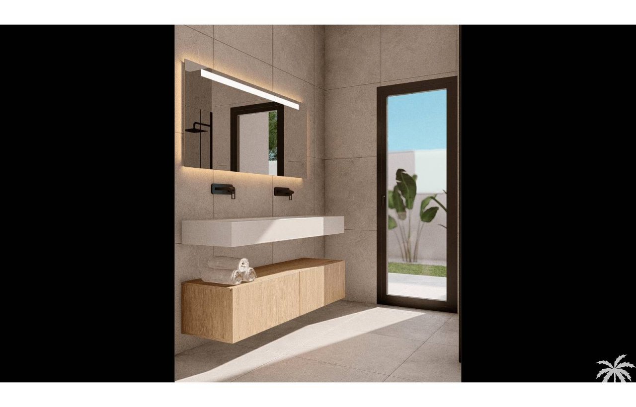 Es gibt Sonnenrollos und die Schlafzimmer verfügen über elektrische Rollläden. In den Schlafzimmern finden Sie außerdem wunderschön verarbeitete Einbauschränke. Die Badezimmer wirken luxuriös und sind mit Badmöbeln, Wand-WCs, Spiegeln mit LED-Beleuchtung und begehbaren Glasduschen ausgestattet. Die Küchen in glänzendem Weiß oder Holzfarbe werden inklusive Induktionskochfeld mit integrierter Dunstabzugshaube, Backofen, Mikrowelle, Waschmaschine, Kühlschrank und integriertem Geschirrspüler in hoher Qualität geliefert.