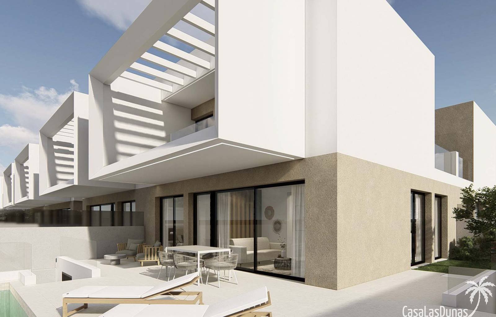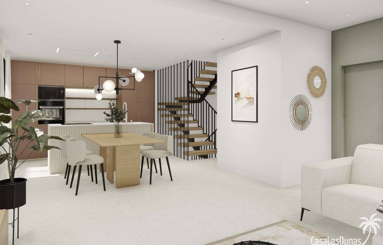 Diese wunderschönen Doppelhaushälften befinden sich in einem Dorf in der Nähe der Urbanisation La Marina, nur 7 Kilometer von den weitläufigen Sandst