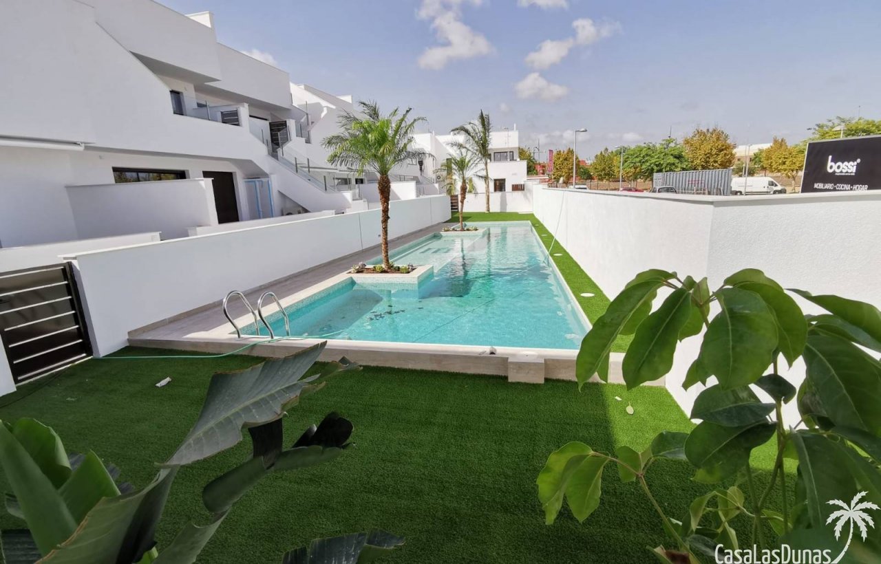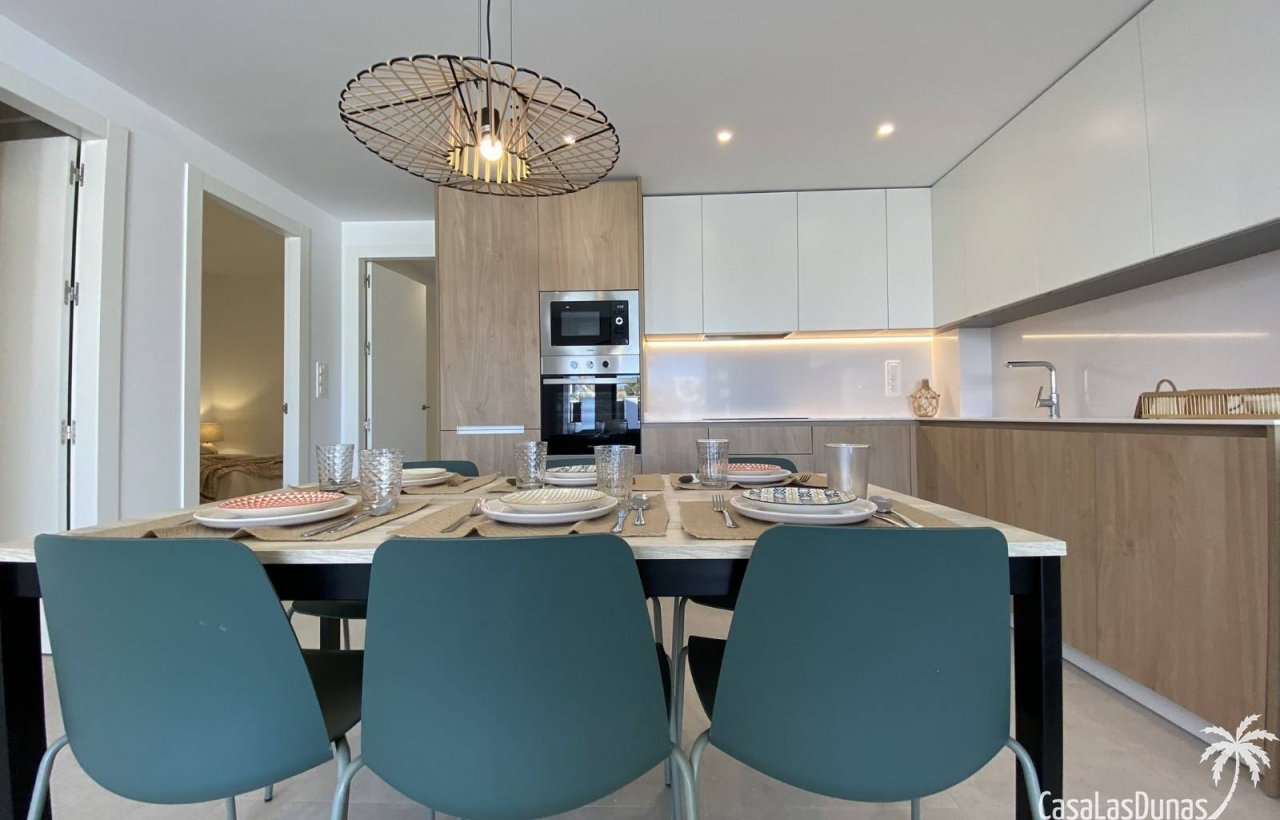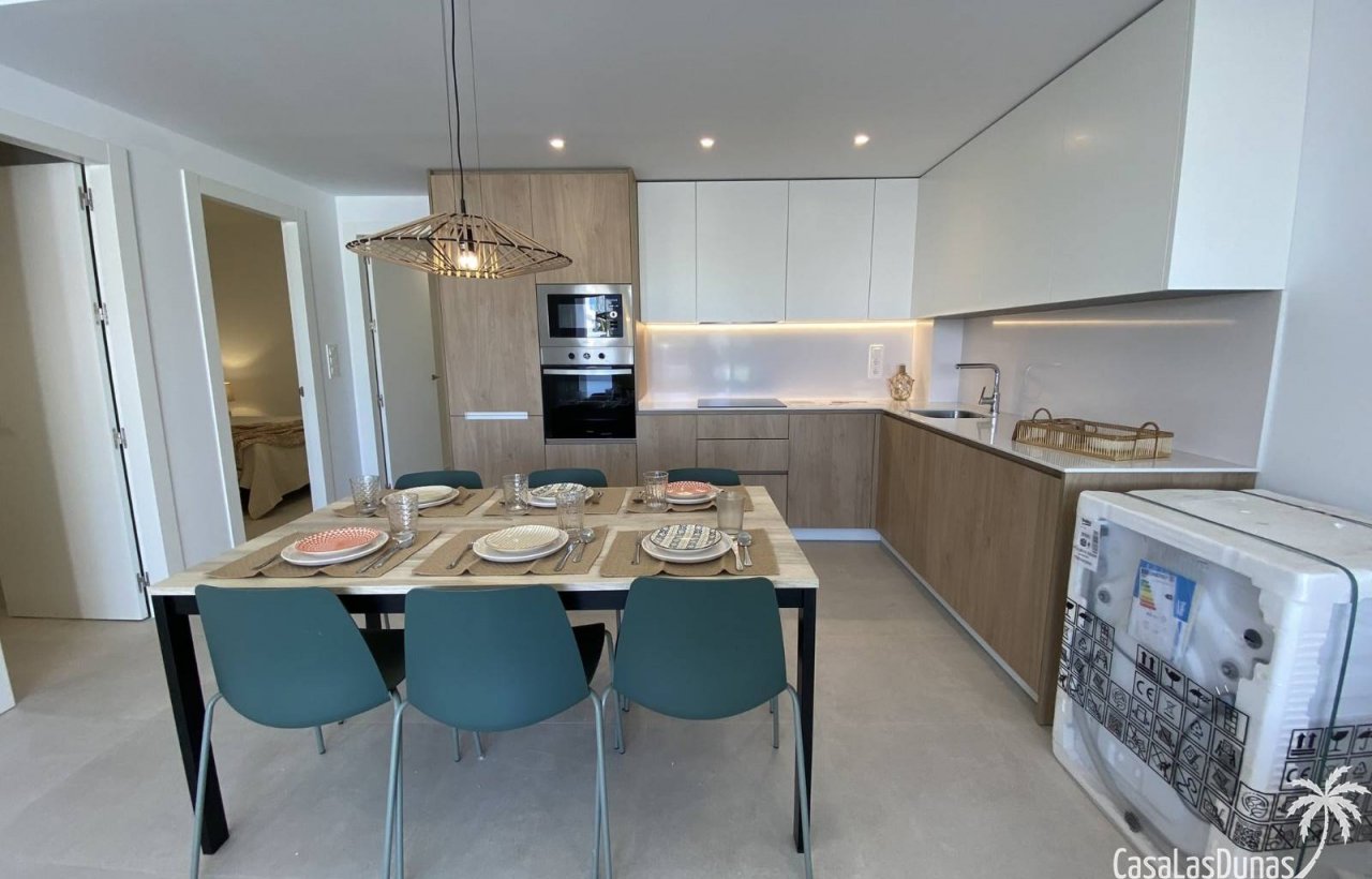 Die Wohnungen verfügen über 2 oder 3 Schlafzimmer und 2 Badezimmer, Sie können zwischen einer Erdgeschosswohnung mit Gartenterrasse oder einem Penthouse mit Dachterrasse wählen. Für die nötige Abkühlung sorgt ein großer Gemeinschaftspool von 60 m2. Die Schlafzimmer verfügen über schöne Einbauschränke. Die Küchen sind mit allen Geräten ausgestattet; Kühlschrank, Geschirrspüler, Dunstabzugshaube, Backofen, Mikrowelle und Waschmaschine. Auch eine LED-Beleuchtung im gesamten Haus wurde konzipiert. Die Badezimmer verfügen über Fußbodenheizung.