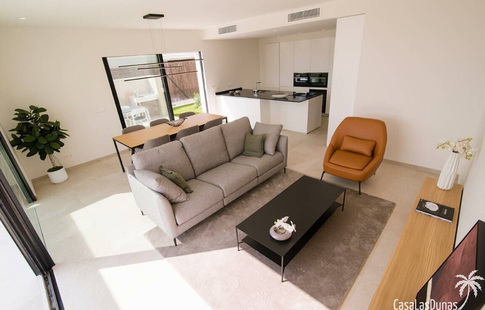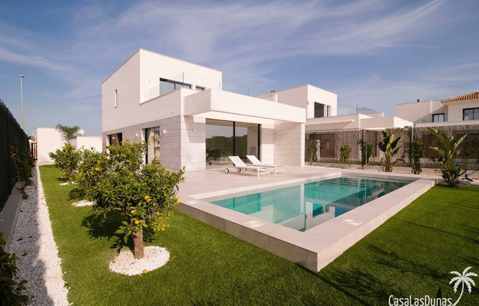 Dieses Projekt wird auf Grundstücken mit einer durchschnittlichen Größe von 435 Quadratmetern gebaut und liegt 200 Meter von einem Supermarkt, Restaurants und Bars entfernt. Wir finden diese geräumigen Villen mit 4 Schlafzimmern in La Herrada, Los Montesinos. Jede Immobilie verfügt über einen privaten Swimmingpool mit einer Größe von vier mal acht Metern. Beim Betreten der Villa finden Sie im Flur einen Schrank für Ihre Mäntel. Danach finden wir eine offene Küche, ein Esszimmer und ein Wohnzimmer. Die großen Fenster lassen viel Licht in das Haus. Hinter der Küche finden Sie zwei geräumige Doppelschlafzimmer, ein Badezimmer und einen praktischen Hauswirtschaftsraum unter der Treppe zum ersten Stock. Im ersten Stock finden Sie die beiden anderen Schlafzimmer, beide mit eigenem Bad. Sie haben auch Zugang zur 30 Quadratmeter großen Dachterrasse, von wo aus Sie einen herrlichen Blick auf die private Terrasse, den Garten und die Umgebung, einschließlich des Salzsees von Torrevieja und der natürlichen Lagune, haben. Obwohl die Standardvilla über vier Schlafzimmer verfügt, besteht die Möglichkeit, eines herauszunehmen, um einen größeren Küchen-, Ess- und Wohnbereich zu nutzen. Zögern Sie nicht, uns für weitere Informationen oder zusätzliche Fotos zu kontaktieren.