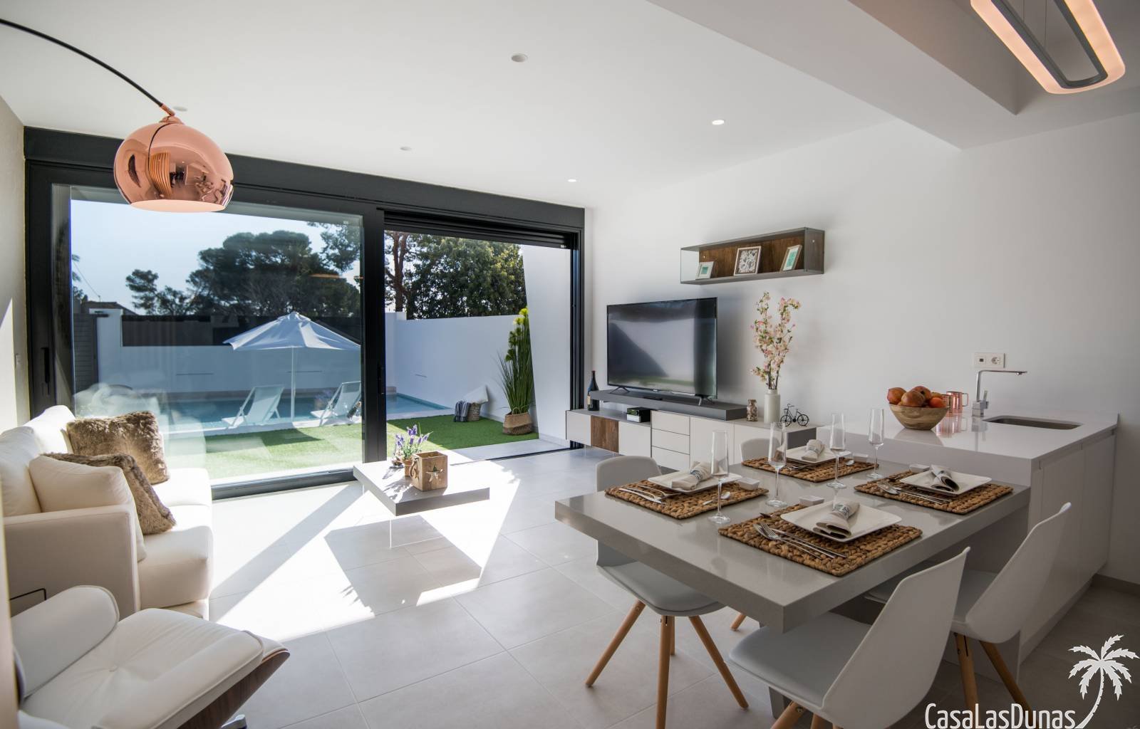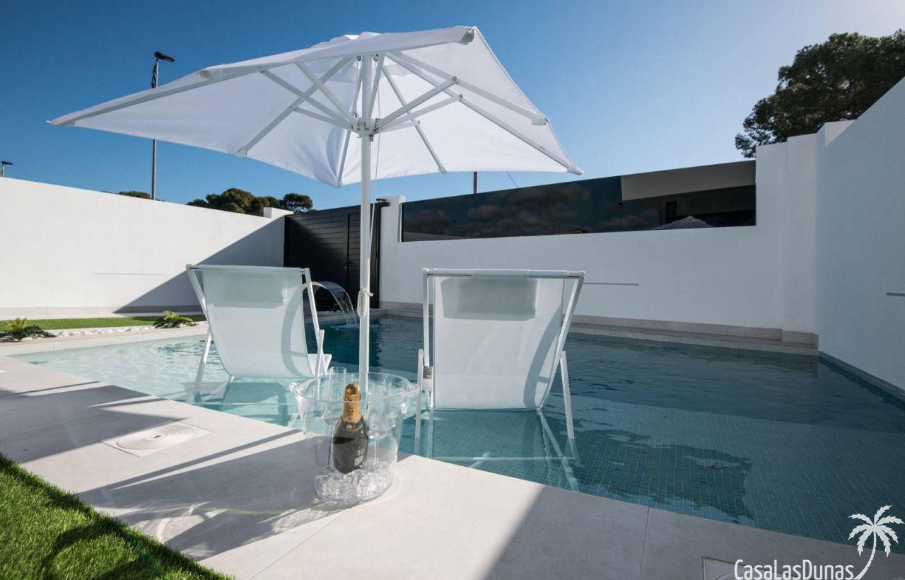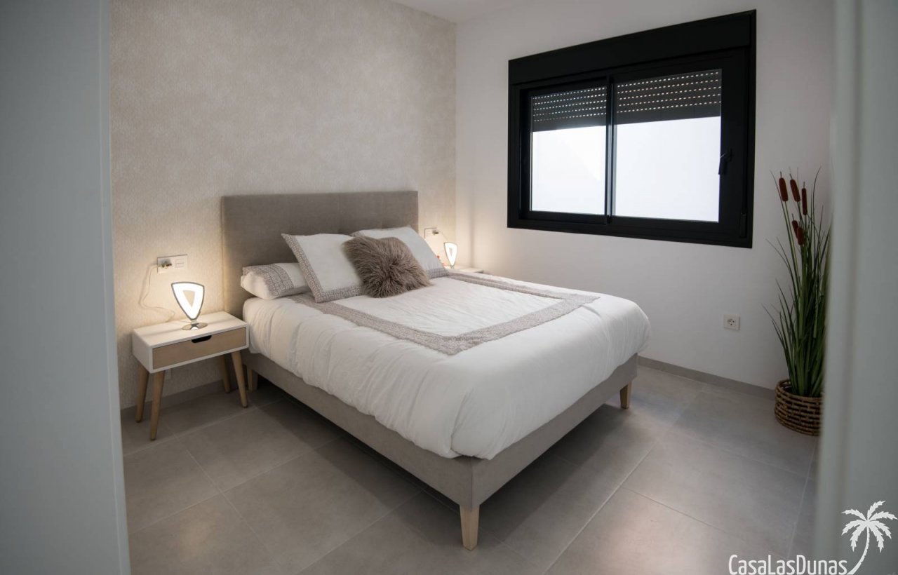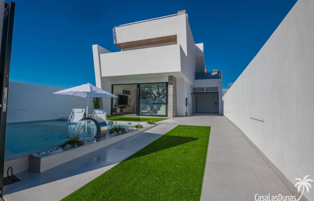 Letzte verfügbare Eigenschaft aus der ersten Phase dieses Projekts! Dieses wunderschöne Projekt befindet sich in der Region Murcia, nur wenige Gehminuten von einem kleinen Einkaufszentrum sowie dem Strand und dem Park entfernt. Im Erdgeschoss der Villa finden Sie das Wohnzimmer, das Esszimmer und die Küche, hell und offen. Hier ist auch zu erwähnen, dass die Fliese und die Arbeitsplatte vom Kunden ausgewählt werden können. Abgesehen davon befinden sich hier eines der Schlafzimmer und ein kleines Badezimmer. Draußen bietet eine zusätzliche Garage einen Parkplatz für 1 Auto sowie einen hübschen Garten von 107 m² inklusive privatem Pool. Eine Dachterrasse kann gegen Aufpreis hinzugefügt werden. Im zweiten Stock finden Sie 2 zusätzliche Schlafzimmer und Badezimmer. Jedes dieser Schlafzimmer hat zusätzlichen Stauraum in der Wand und das Hauptschlafzimmer hat einen begehbaren Kleiderschrank. Der Preis beinhaltet alle Geräte, Garagentor und Klimaanlage. Alles in allem ist dieser moderne Neubau sehenswert. Für weitere Informationen wenden Sie sich bitte an uns.