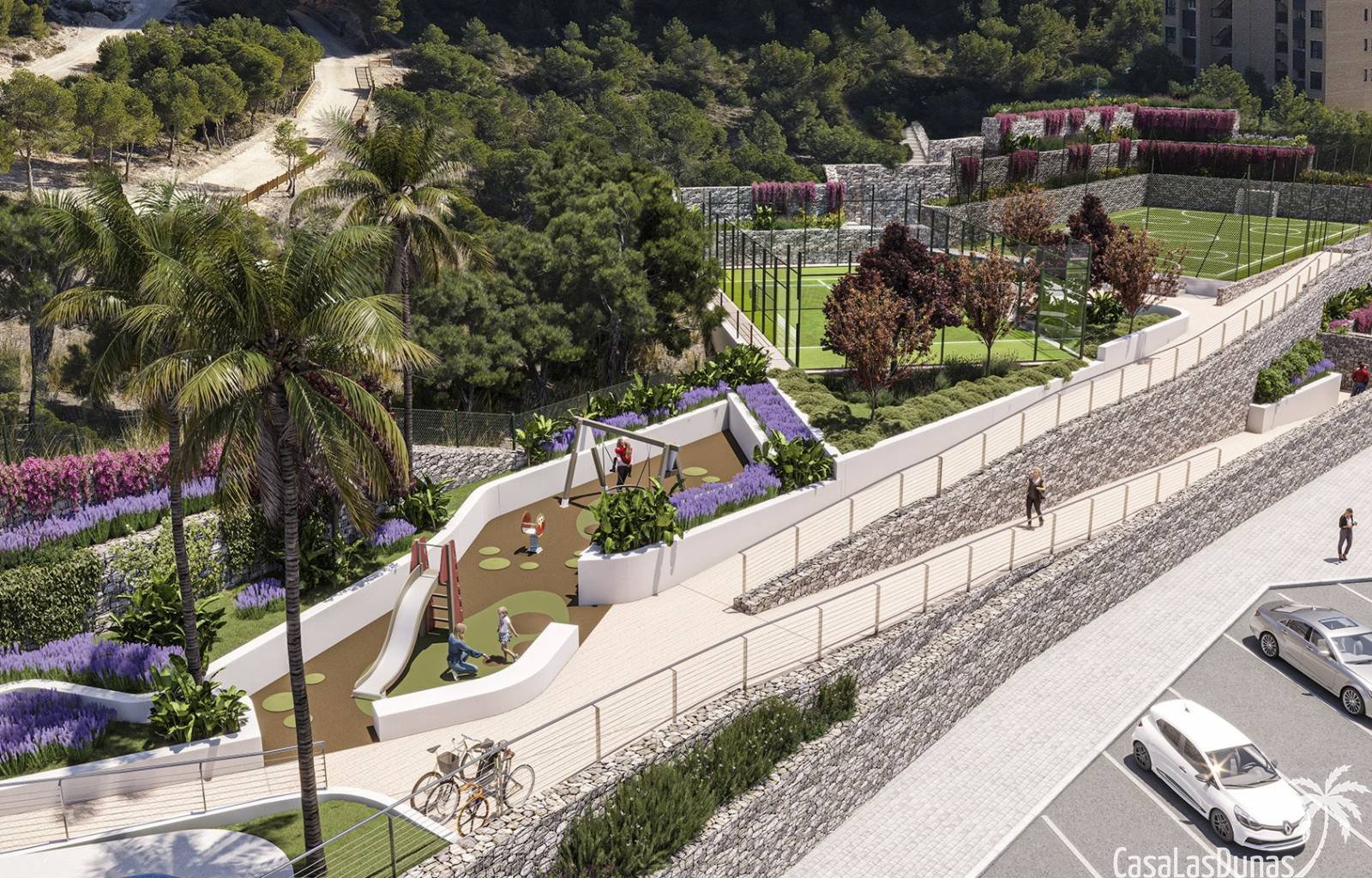 Dieses Wohngebäude verfügt über nicht weniger als 108 Wohneinheiten. Es gibt Häuser mit 2 oder 3 Schlafzimmern und 1 Penthouse mit 4 Schlafzimmern. Die öffentlichen Bereiche dieses Resorts bieten alles, was Sie sich wünschen können; ein Schwimmbad für Erwachsene und Kinder, 2 Whirlpools, ein Panorama-Fitnessstudio, ein Kinderspielplatz und ein großer Sportbereich mit Fahrradkeller. Es gibt auch einen Aussichtspunkt, an dem Sie den mediterranen Lebensstil genießen können. Es besteht die Möglichkeit, einen Parkplatz zu erwerben. Suchen Sie eine moderne und luxuriöse Wohnung in toller Lage? Kontaktieren Sie uns für weitere Informationen!