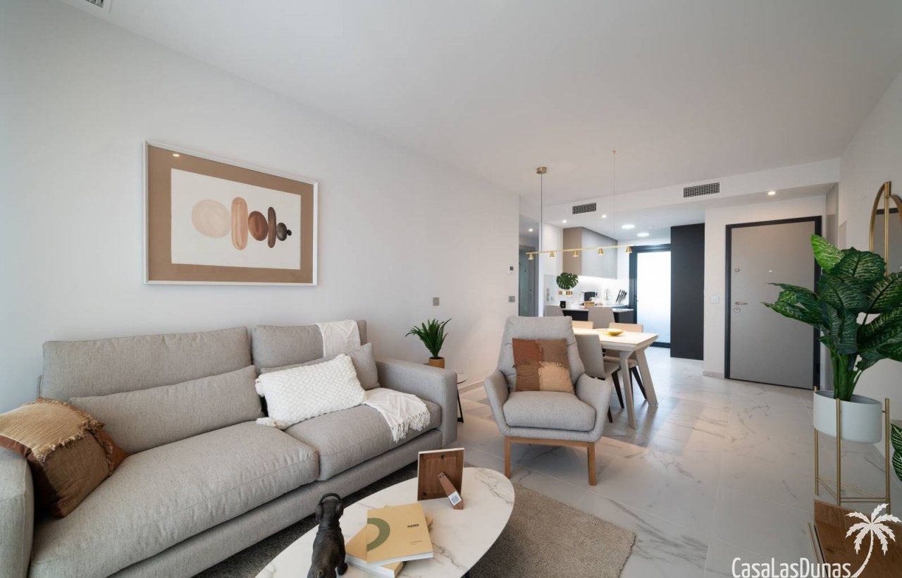 Dieses Wohngebäude verfügt über nicht weniger als 108 Wohneinheiten. Es gibt Häuser mit 2 oder 3 Schlafzimmern und 1 Penthouse mit 4 Schlafzimmern. Die öffentlichen Bereiche dieses Resorts bieten alles, was Sie sich wünschen können; ein Schwimmbad für Erwachsene und Kinder, 2 Whirlpools, ein Panorama-Fitnessstudio, ein Kinderspielplatz und ein großer Sportbereich mit Fahrradkeller. Es gibt auch einen Aussichtspunkt, an dem Sie den mediterranen Lebensstil genießen können. Es besteht die Möglichkeit, einen Parkplatz zu erwerben. Suchen Sie eine moderne und luxuriöse Wohnung in toller Lage? Kontaktieren Sie uns für weitere Informationen!