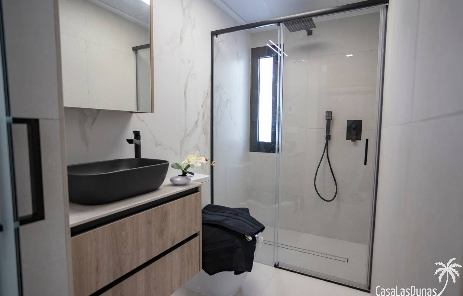 Dieses wunderschöne Projekt mit neuer Phase, befindet sich in San Javier, nur wenige Gehminuten vom Geschäftszentrum sowie dem Strand und dem Park entfernt. Im Erdgeschoss der Villa befindet sich der helle und offene Wohn-, Ess- und Küchenbereich. Hier ist auch zu erwähnen, dass die Fliesen und Arbeiten vom Kunden ausgewählt werden können. Ansonsten befindet sich im Erdgeschoss eines der Schlafzimmer und ein kleines Badezimmer. Auf der Außenseite gibt es einen Parkplatz für 1 Auto sowie einen schönen Garten oder 64m² mit privatem Pool. Im zweiten Stock finden Sie 2 zusätzliche Schlafzimmer und das zweite Badezimmer. Sie können auch die große Dachterrasse nutzen, um im Sommer die spanische Sonne zu genießen. Dort befindet sich auch eine Außenküche, die sich im Sommer ideal für Familienfeiern eignet. Der Preis beinhaltet alle Haushaltsgeräte, Klimaanlage, Lagerung, externe Lautsprecher und Fußbodenheizung in den Bädern. Alles in allem ist dieser moderne Neubau eine Besichtigung wert. Für weitere Informationen zögern Sie nicht uns zu kontaktieren.
