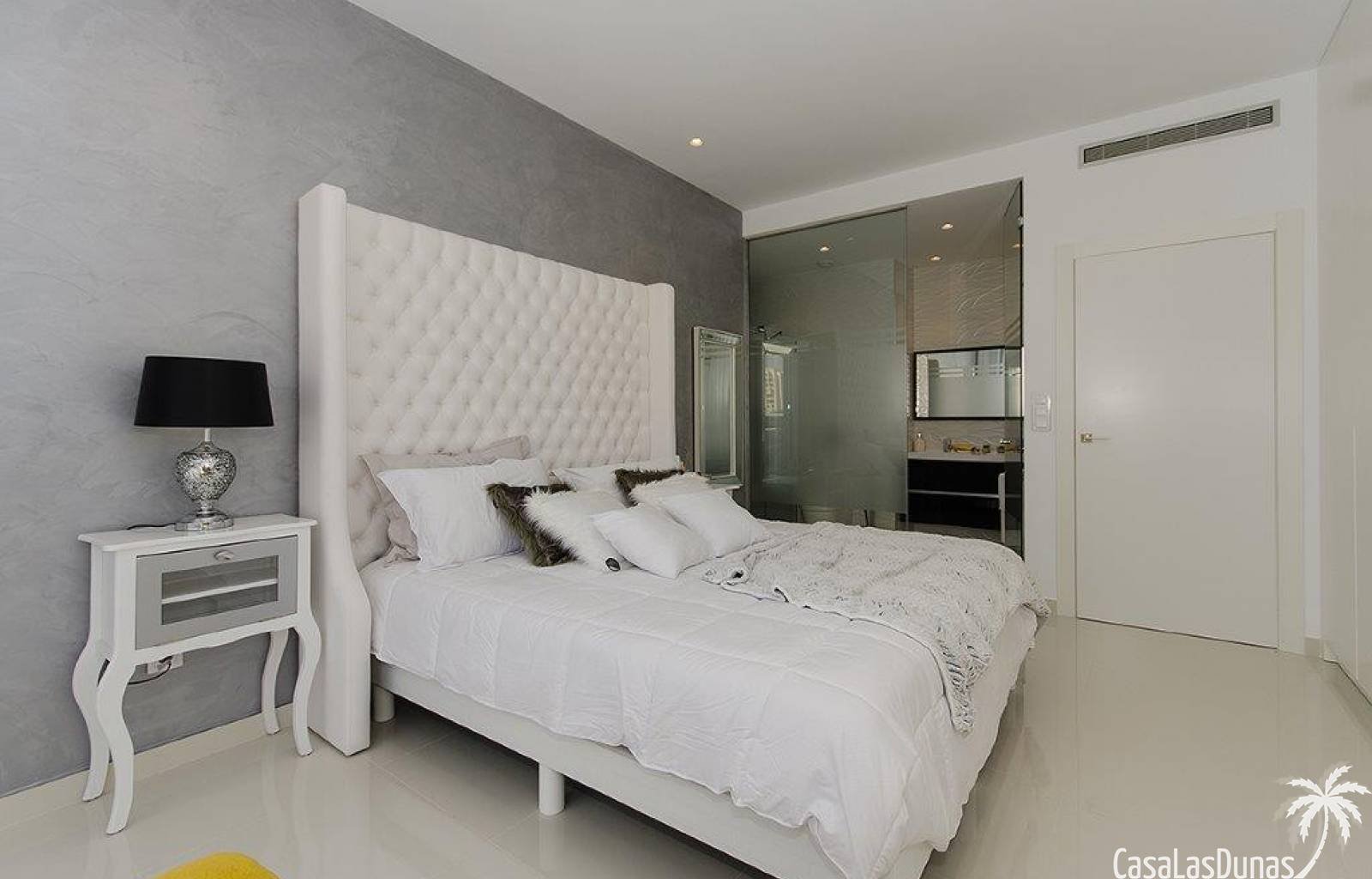 Diese Residenz, bestehend aus 16 freistehenden Villen, wird derzeit nur 3 Gehminuten von den ausgezeichneten Sandstränden von Mar Menor entfernt gebaut. Es stehen verschiedene Villenmodelle zur Verfügung, von Villen mit 3 Schlafzimmern (92 m²) bis Villen mit 4 Schlafzimmern (153 m²). Diese Seite handelt von dem Villenmodell Silvia, das auf Grundstücken von 440 m², 640 m² (Preis 510.000 €) und 820 m² (Preis 595.000 €) gebaut wurde. Das Anwesen ist in zwei Etagen aufgeteilt und verfügt über eine großzügige Dachterrasse von 52 m². Dieses Modell ist auch serienmäßig mit einer elektrischen Fußbodenheizung in den Bädern, einem Pool von 8 x 4 m, der Landschaftsgestaltung und den Zaunwänden sowie einem Carport ausgestattet. Die Bauzeit dieser Villen beträgt 18 Monate, was auch bedeutet, dass die Aufteilung des Hauses und die zu verwendenden Materialien weiterhin vom Käufer gewählt werden können. Möchten Sie einen Besichtigungstermin vereinbaren? Kontaktieren Sie uns per Mail oder rufen Sie uns sofort an!