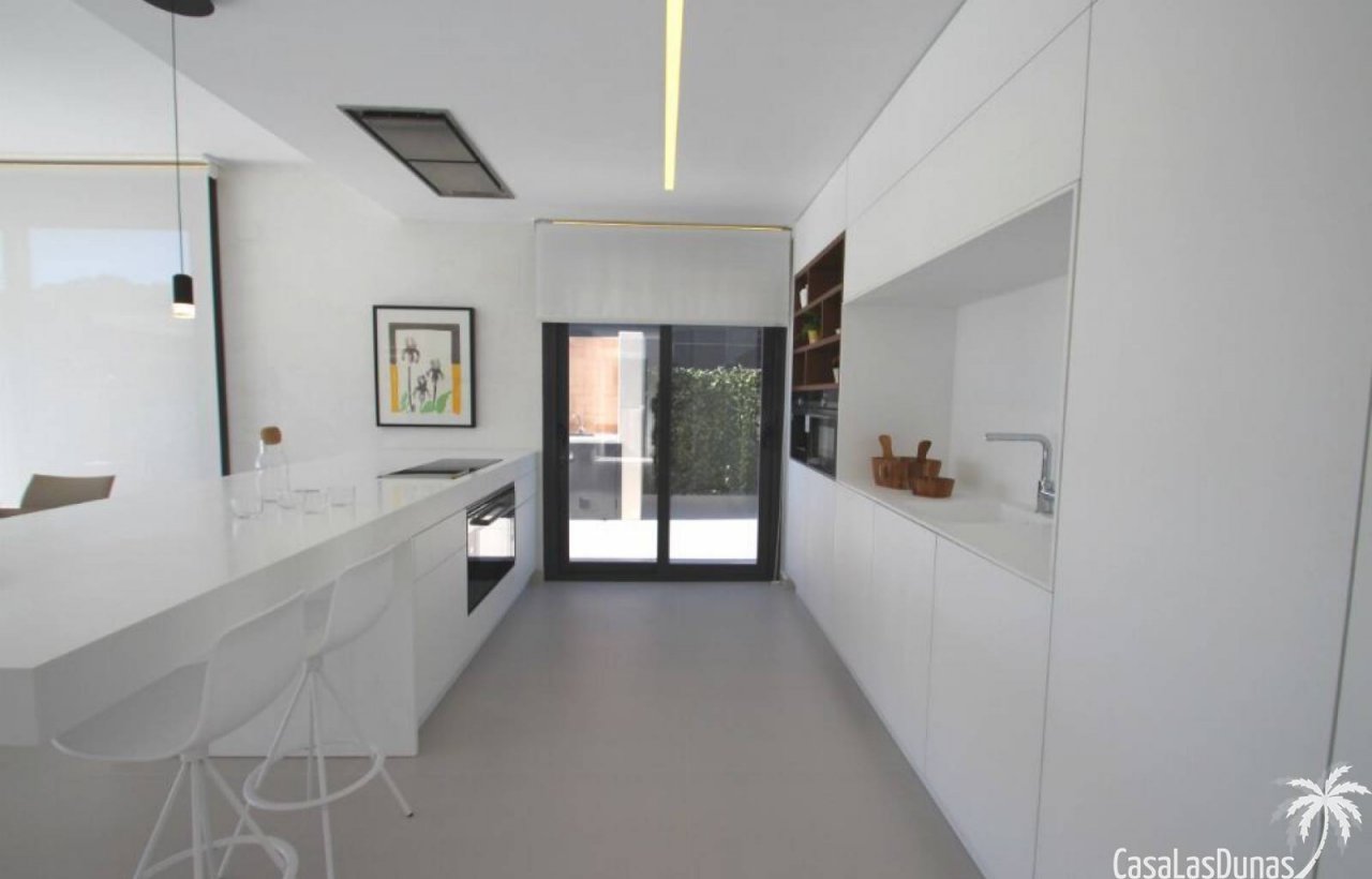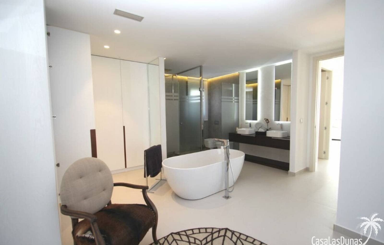 Die Residenz liegt nur 400 Meter vom Strand entfernt. Ein großer Supermarkt ist 100 Meter entfernt. Das gleiche Modell kann für 749.000 € auch an Land 10 km von der Küste entfernt gebaut werden. Im Preis inbegriffen: Fußbodenheizung in den Bädern sowie sämtliche Innen- und Außenbeleuchtung im Haus. Der Bau der Villa dauert ca. 12 Monate nach Vertragsunterzeichnung. Haben Sie Interesse an dieser Traumvilla? Kontaktieren Sie uns also schnell!