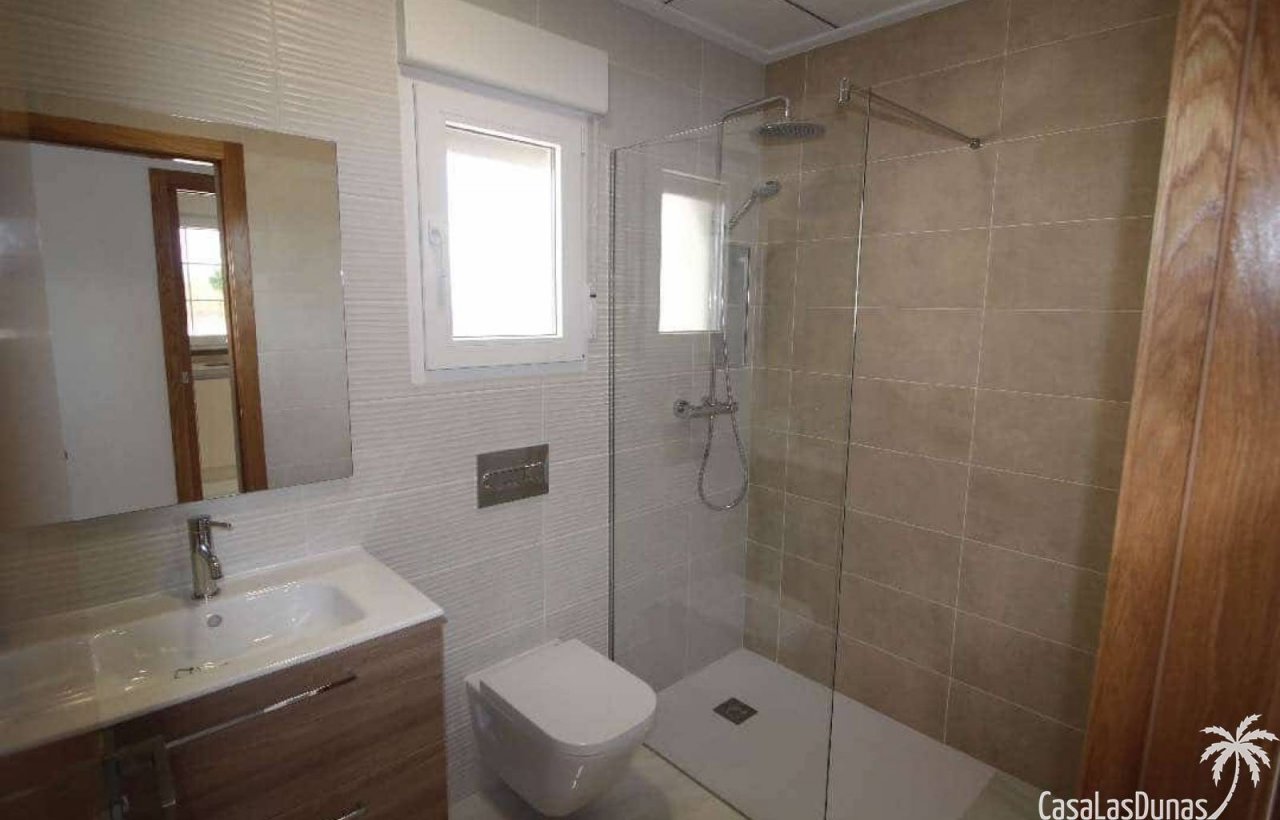 In allen Schlafzimmern, im Wohnzimmer und in der Küche ist eine Klimaanlage vorinstalliert. Die Badezimmer verfügen über eine Toilette, eine Dusche, eine Glaswand und Badmöbel.