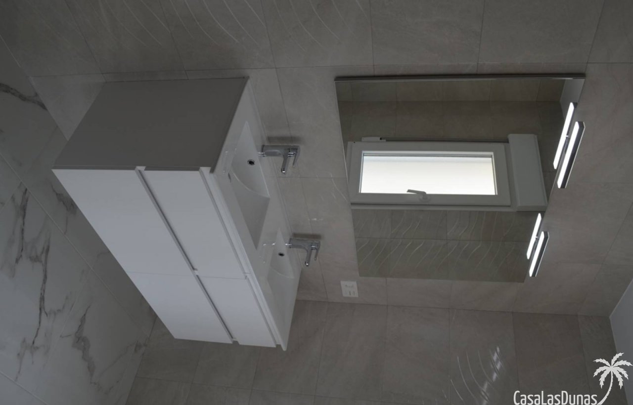 In allen Schlafzimmern, im Wohnzimmer und in der Küche ist eine Klimaanlage vorinstalliert. Die Badezimmer verfügen über eine Toilette, eine Dusche, eine Glaswand und Badmöbel.