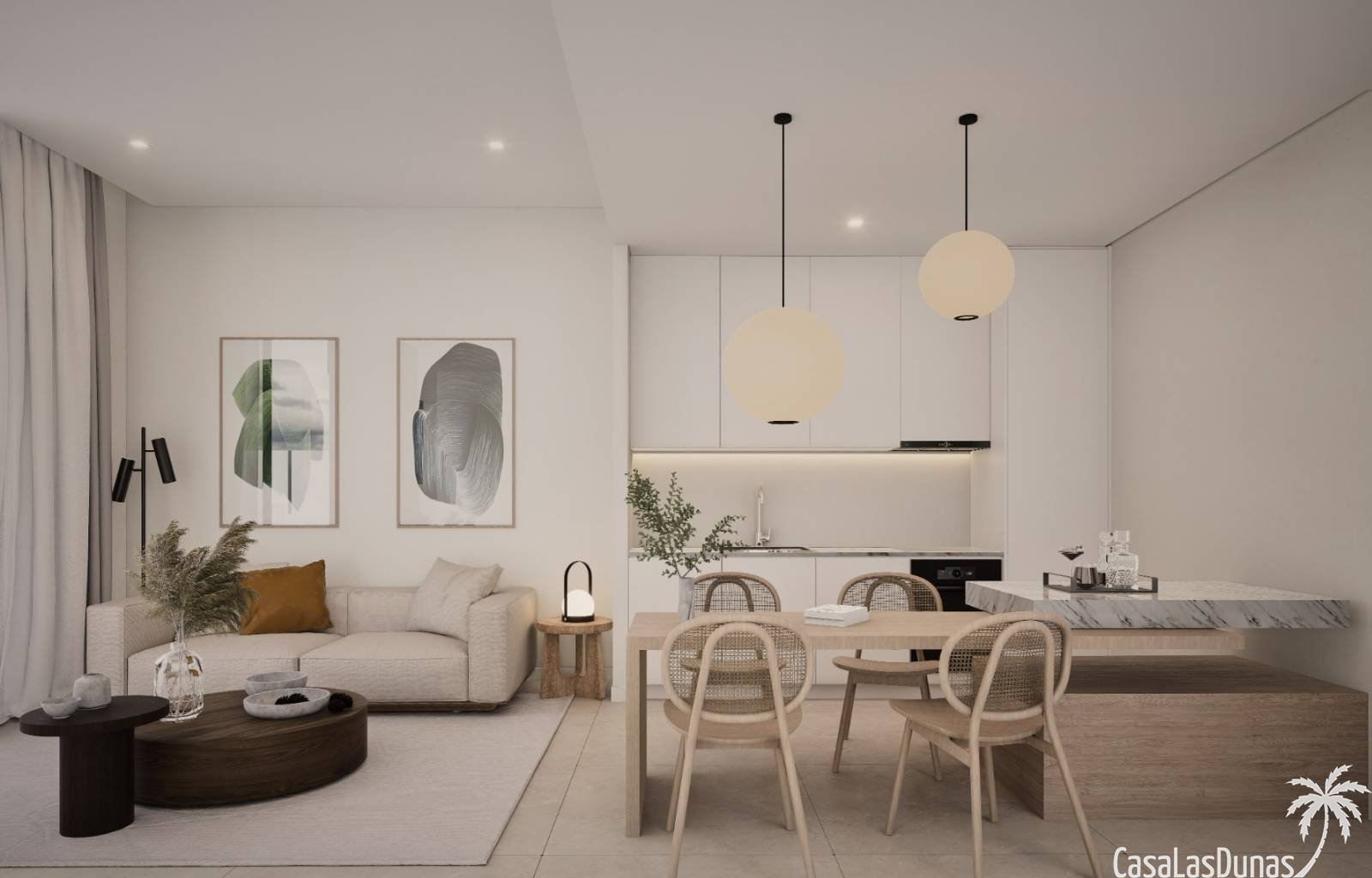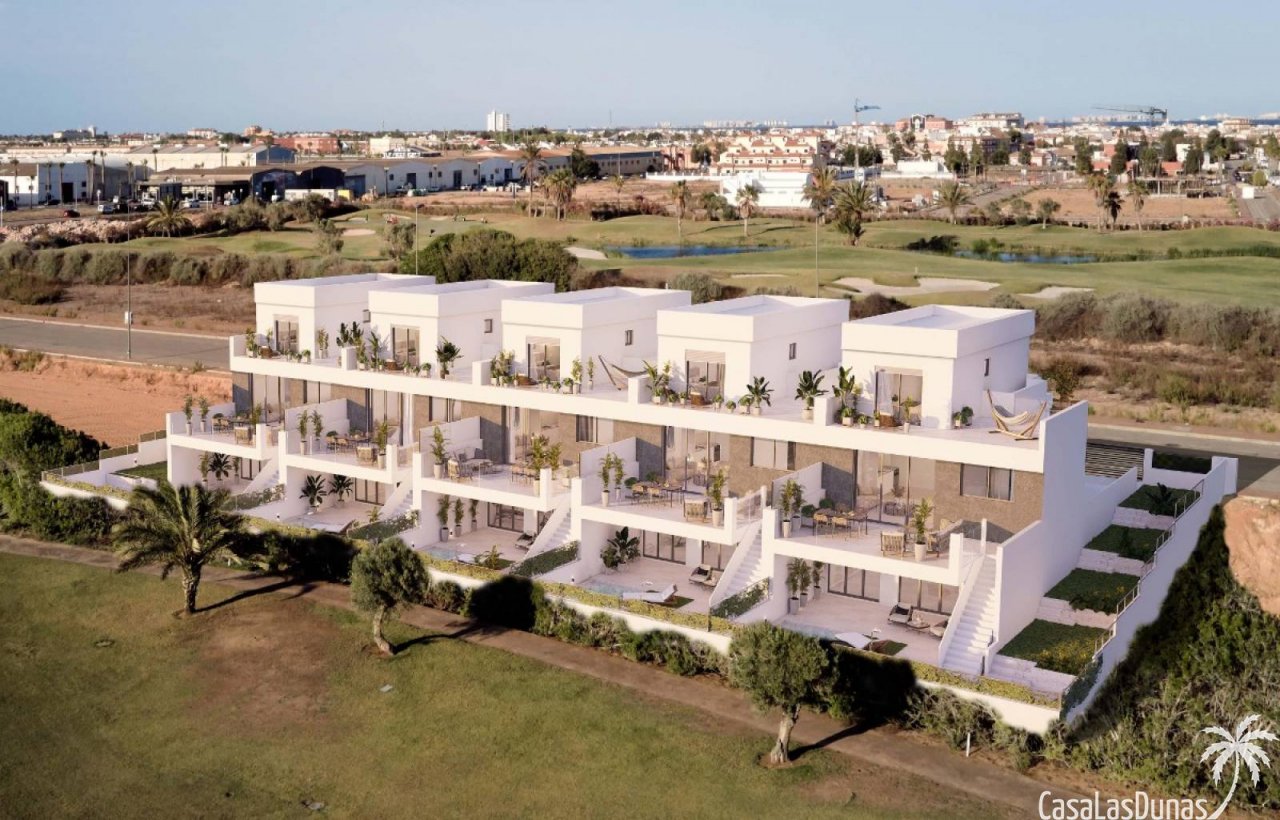 An der Costa Blanca Süd in Los Alcázares entstehen 5 wunderschöne Doppelhaushälften mit privaten Swimmingpools. Die Häuser haben alle einen herrliche