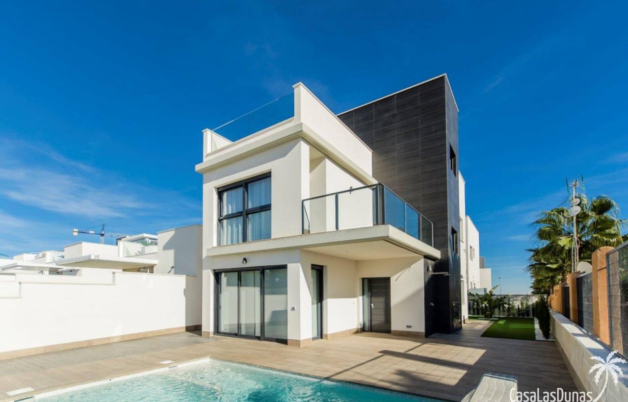 Diese Wohnanlage, bestehend aus 18 einzelnen Villen, befindet sich derzeit im Bau, 10 Kilometer von den hervorragenden Sandstränden der Costa Blanca entfernt. Es stehen 4 verschiedene Villentypen zur Verfügung, von Villen mit 3 Schlafzimmern und 97 m² bis zu Villen mit 4 Schlafzimmern und 197 m² Wohnfläche. Dieses Modell namens „Lea“ besteht aus 3 oder 4 Schlafzimmern mit einer Auswahl an Grundstücken von 400 m2 bis 1100 m2. Im Preis inbegriffen sind ein 7 x 4 m großer Swimmingpool und Fußbodenheizung in allen Badezimmern. Die Bauzeit dieser Villen beträgt 20 Monate, was auch bedeutet, dass der Grundriss des Hauses und die zu verwendenden Materialien noch vom Käufer gewählt werden können. Dieses schöne Neubauprojekt eignet sich perfekt als Investition, um eine gute Rendite zu erzielen. Bitte kontaktieren Sie uns für weitere Informationen.