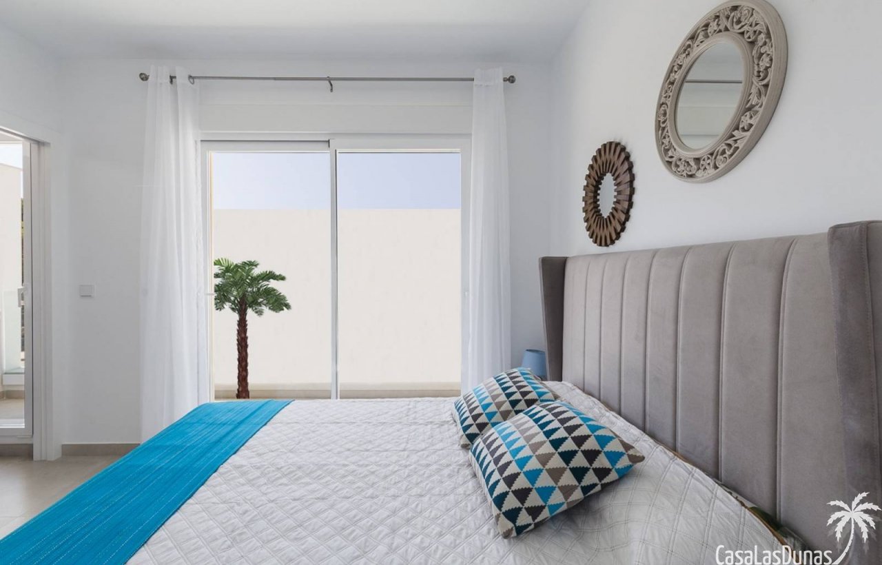 Diese wunderschöne Villa ist Teil einer Anlage mit 11 Häusern, nur wenige Minuten vom Zentrum von San Javier und Santiago de la Ribera entfernt. Es wird drei verschiedene Modelle geben. Dieses Modell ist mit 3 Schlafzimmern, 2 Bädern und einer großen Dachterrasse ausgestattet, was diese Villa zu einem wunderbaren Zuhause zum Leben macht. Durch den Garten mit einem 14 m² großen Swimmingpool und einer schönen Terrasse gelangen Sie zum Haupteingang des Hauses. Das Wohnzimmer mit offener Küche bietet genügend Platz, um Zeit für sich selbst zu verbringen, fernzusehen oder etwas Besonderes für Ihre Familie oder Gäste zu kochen. Hinter der Küche befinden sich außerdem eine kleine Waschküche und ein Badezimmer. Das Hauptschlafzimmer verfügt über ein eigenes Bad und einen begehbaren Kleiderschrank. Draußen führt eine Außentreppe auf die zusätzliche 92 m² große Dachterrasse, ideal, um im Sommer die warme spanische Sonne zu genießen. Zögern Sie nicht, uns für weitere Informationen zu kontaktieren.