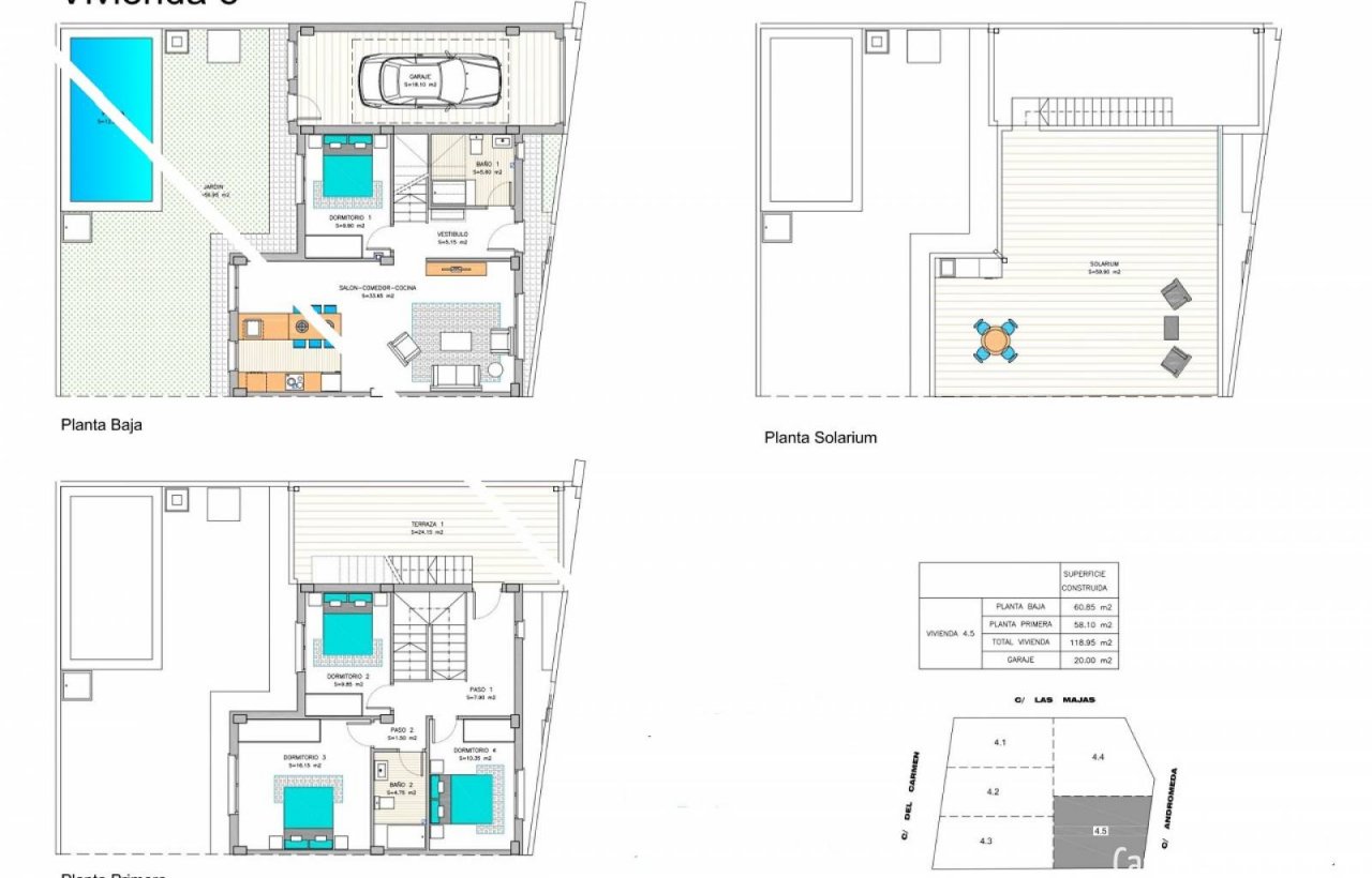 In diesem kleinen Dorf in der Nähe des Mar Menor finden Sie dieses kleine Projekt mit nur 5 Villen. Diese Villen mit 3/4 Schlafzimmern und 3 Bädern v