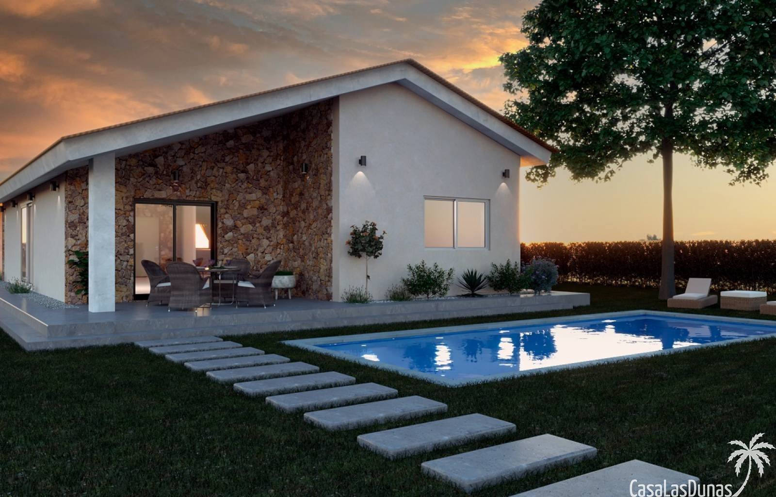 Die modernen Villen verfügen über ein großes und helles Wohnzimmer mit einer voll ausgestatteten Küche. Alle drei Schlafzimmer verfügen über Einbauschränke. Für das gesamte Haus ist eine Vorinstallation einer Klimaanlage vorgesehen. LED-Beleuchtung innen und außen ist vorhanden. Elektrische Rollläden und eine Gegensprechanlage/Video sind ebenfalls vorhanden. Draußen können Sie Ihren eigenen Swimmingpool genießen und auf der Außenterrasse entspannen. *Weitere Informationen zur Region: