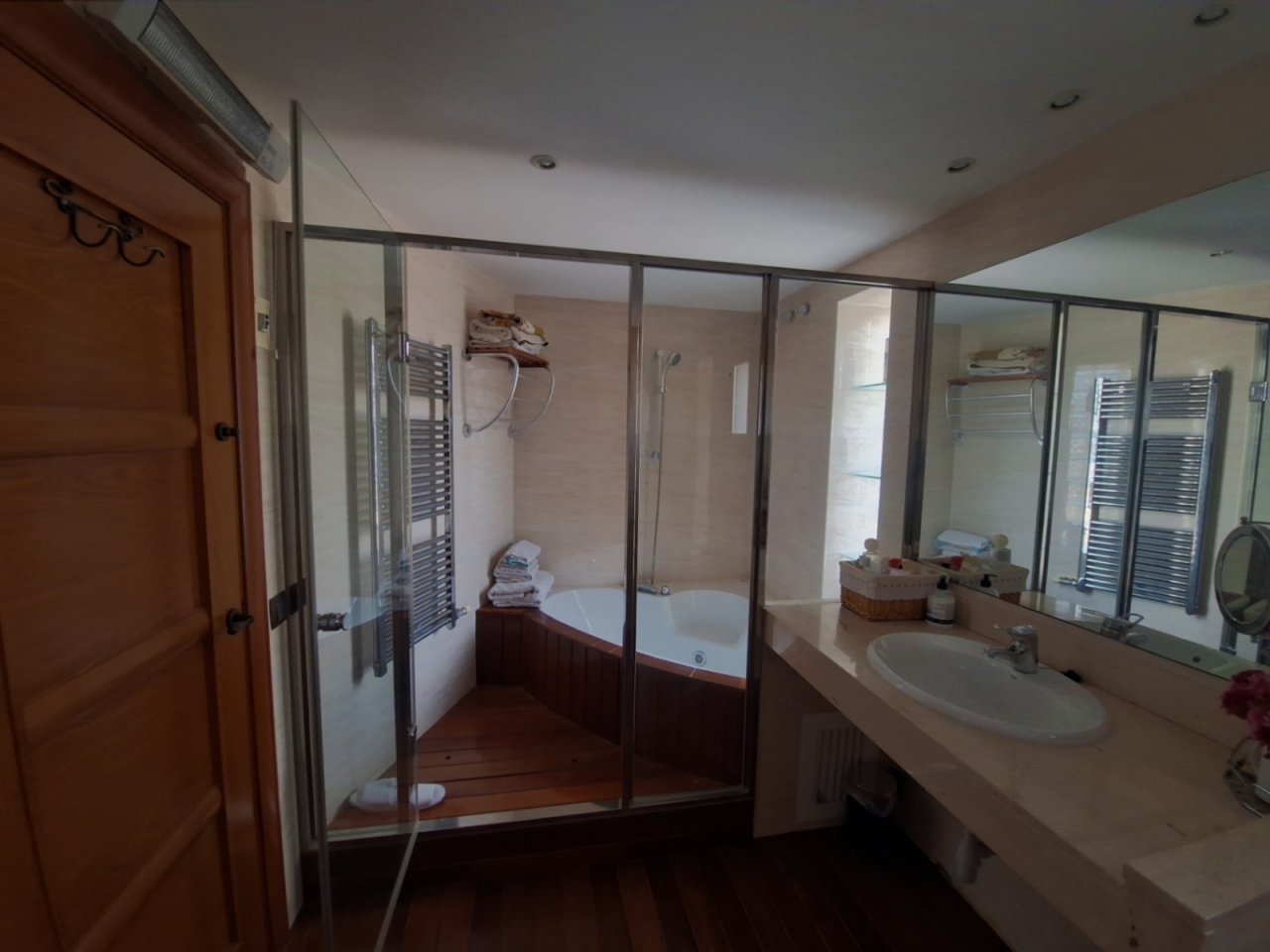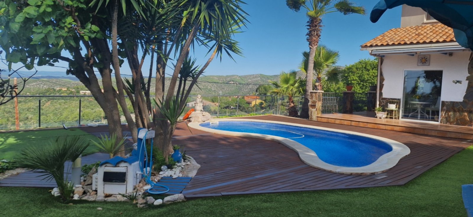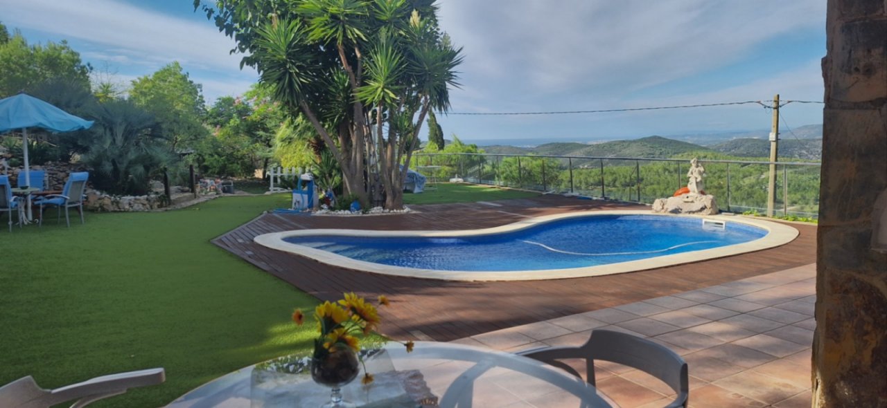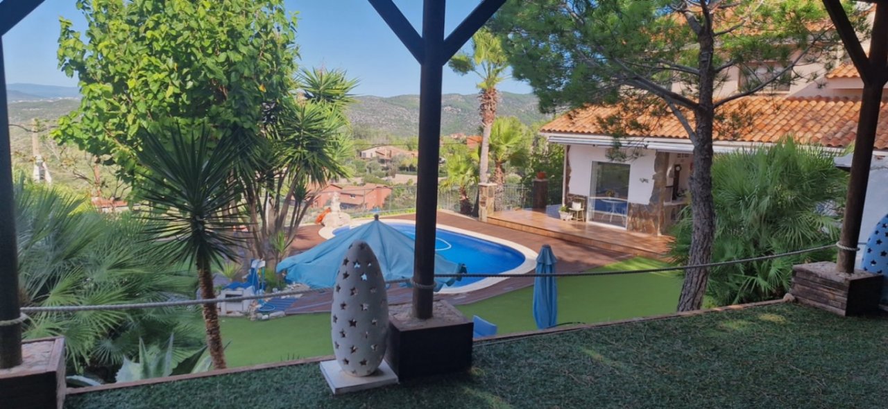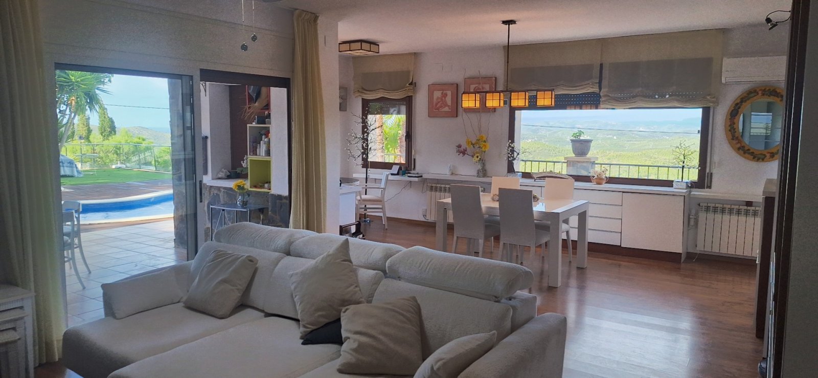 Nach Südwesten ausgerichtete Villa mit herrlichem Blick vom Wohnzimmer und Garten, mit Touristenlizenz. Das Anwesen hat eine sehr komfortable Aufteilung mit im Erdgeschoss die Garage, das Wohnzimmer, die Küche, zwei Schlafzimmer, zwei Badezimmer und Zugang zum Garten mit Pool. Im ersten Stock befinden sich drei weitere Schlafzimmer, eine große Terrasse und ein Badezimmer mit Whirlpool.Die Villa verfügt über viele begehrte Qualitäten wie Gasheizkörper, PVCFenster und Fensterläden sowie hochwertige Fußböden.Zwischenräume:Erdgeschoss: Suite von 16m2, Doppelzimmer 10m2, Gästebad, Salon 60m2, Küche 15m2.Erster Stock: Drei Zimmer von 12, 13 und 45m2, Badezimmer mit Whirlpool.Mitten in der Natur gelegen und doch nur 20 Minuten von Castelldefels entfernt.Höhepunkte dieser Immobilie Design und Layout Hochwertige Konstruktion und Materialien Ruhe und Aussicht
