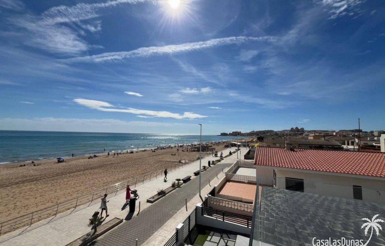 Diese einzigartige Villa liegt direkt am Strand von La Mata. Sie werden großzügige Räume, perfekte Oberflächen, natürliches Licht und einen herrlichen Blick auf das Meer genießen. Darüber hinaus verfügt die Villa über einladende Außenbereiche, um das gute Wetter jeden Tag im Jahr zu genießen: ein Grundstück von 350 m² und eine elegante Dachterrasse Grill, ideal für gesellige Momente mit Freunden und Familie. Darüber hinaus besteht Platz für eine weitere Erweiterung des Hauses mit der Möglichkeit, ein zusätzliches Gästeapartment zu schaffen. Die Villa verfügt über 5 Schlafzimmer und 4 Badezimmer. Haben Sie Interesse an dieser einzigartigen Villa? Kontaktieren Sie uns also schnell.
