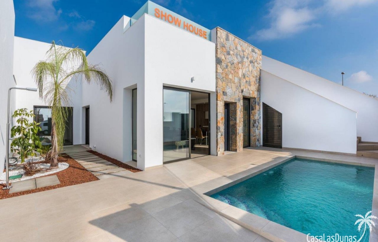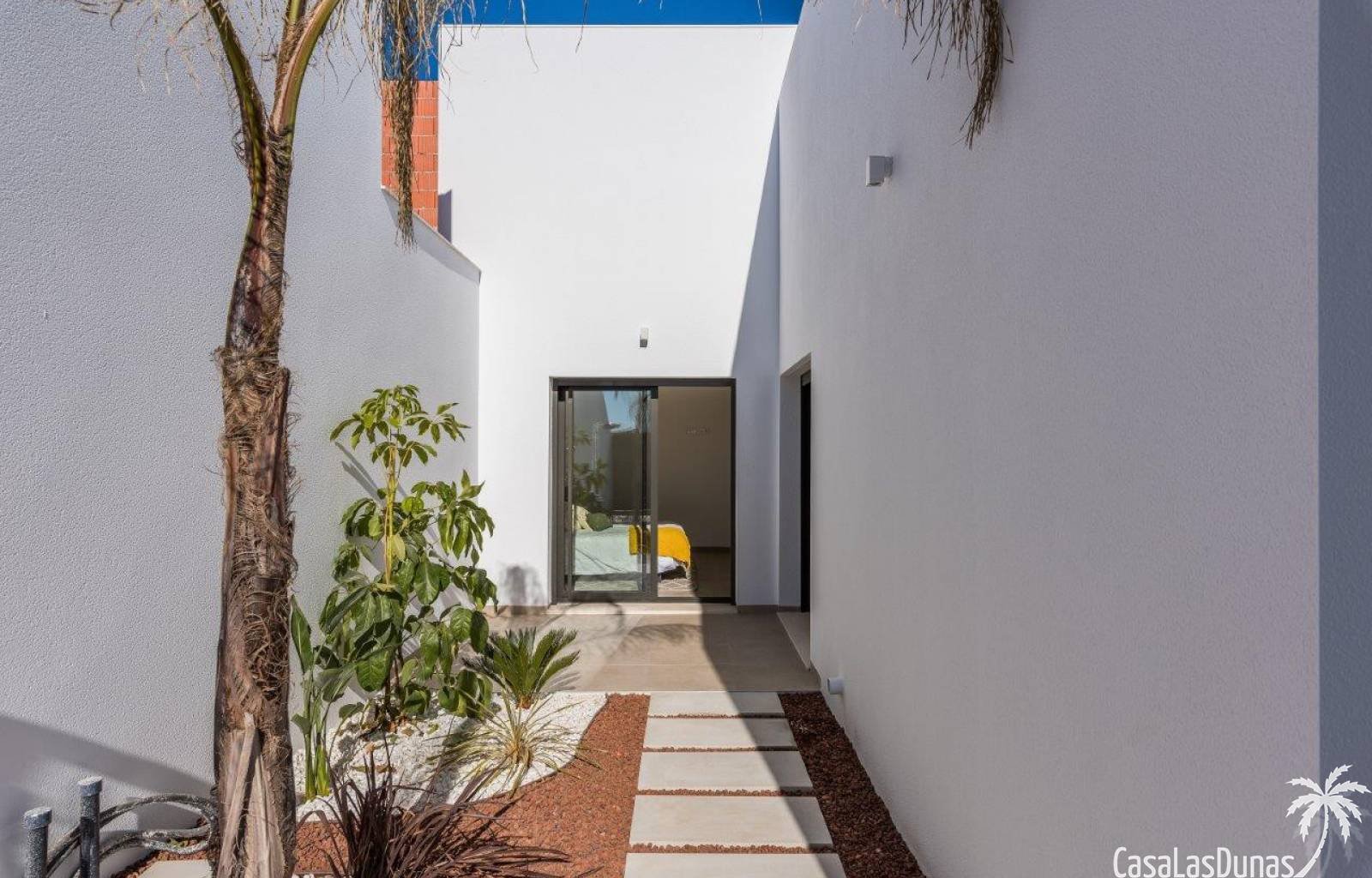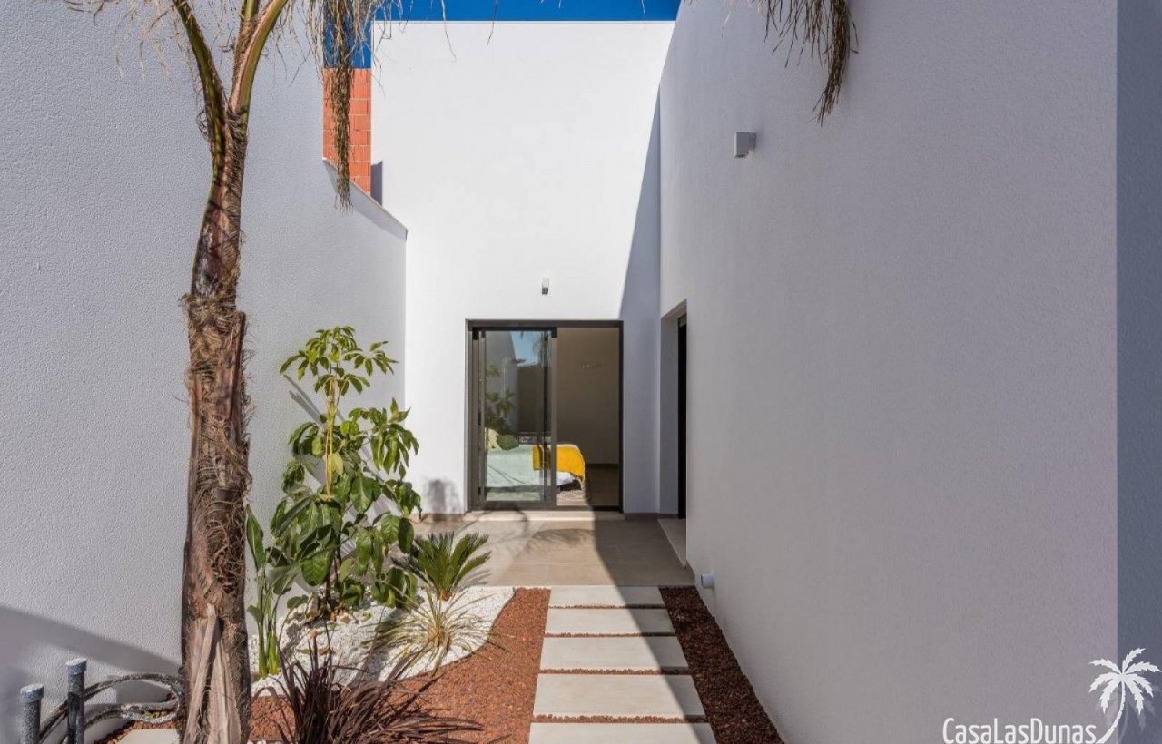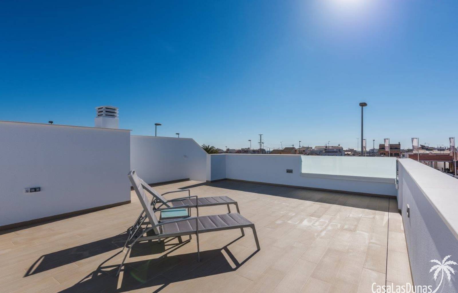 Dieses moderne und erfolgreiche Projekt wird bereits phasenweise auf verschiedenen Grundstücken in der Stadt Pilar de la Horadada, sechs Kilometer von der Küste und den Salinas entfernt, umgesetzt. Mittlerweile befindet sich Phase VIII im Bau und innerhalb dieses Projekts haben Sie die Wahl zwischen 2 Arten von Doppelhaushälften, die in ein geräumiges Wohn-/Esszimmer mit offener Küche, zwei oder drei Schlafzimmer sowie zwei Badezimmer unterteilt sind. Die Häuser verfügen außerdem über eine große Dachterrasse, eine sonnige Gartenterrasse mit privatem Pool und Lagerraum auf einem Privatgrundstück zum Startpreis von 244.900 €. Das Haus ist aus hochwertigen Materialien gebaut und verfügt über Badezimmermöbel und Spiegel mit LED-Beleuchtung, Glasduschwände, LED-Innen- und Außenbeleuchtung sowie Vorinstallation einer Klimaanlage über ein Leitungssystem. Die Küche in glänzendem Weiß oder Holzfarbe ist komplett möbliert und ausgestattet mit Induktionskochfeld, Backofen, Mikrowelle, integriertem Kühlschrank und Dunstabzugshaube. Zu Fuß oder mit dem Fahrrad erreichen Sie alle notwendigen Einrichtungen und Annehmlichkeiten in den umliegenden Dörfern mit ihrer köstlichen spanischen Gastronomie. Planen Sie einen Besuch? Bitte kontaktieren Sie uns per E-Mail oder rufen Sie uns direkt an.