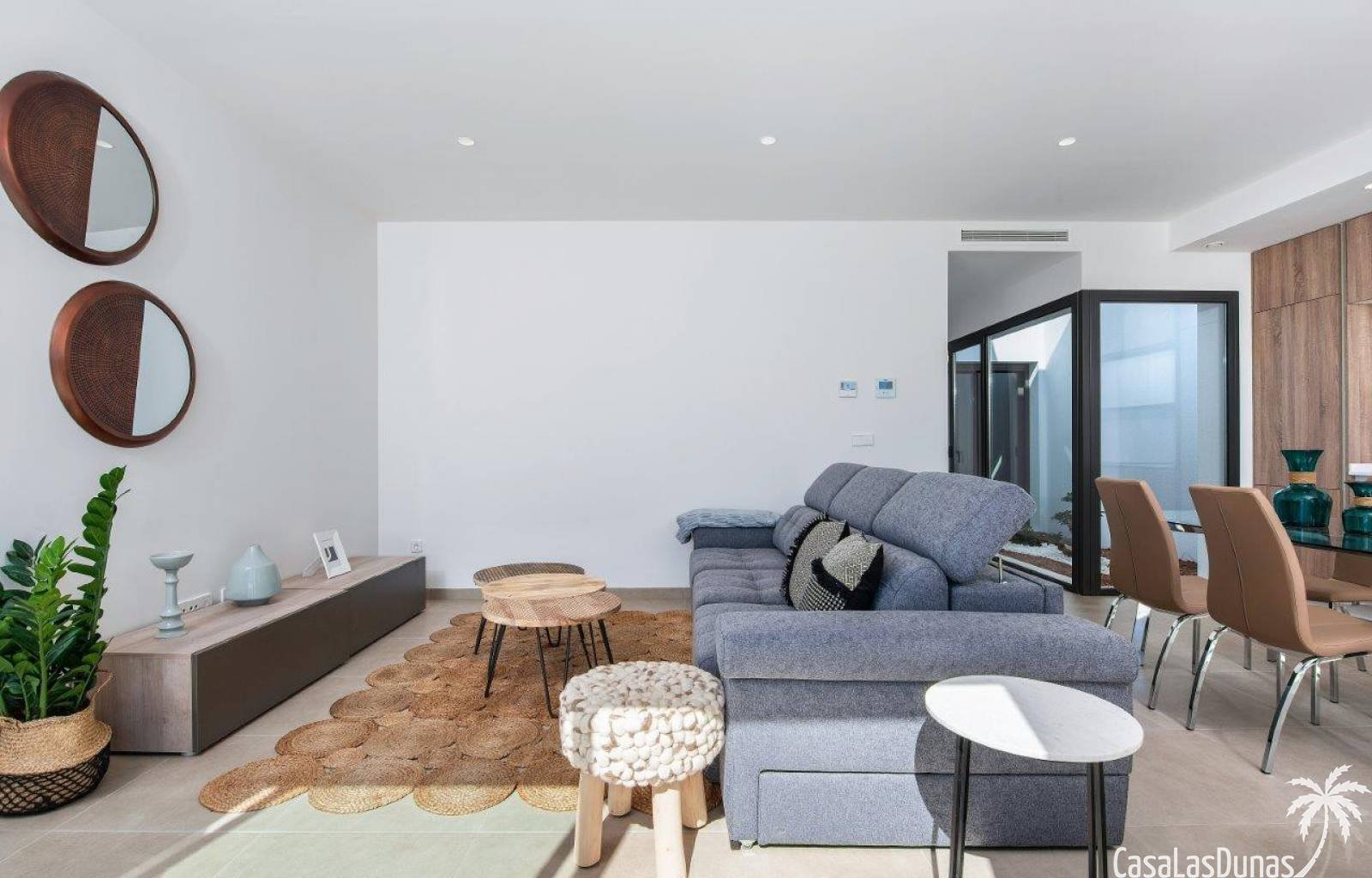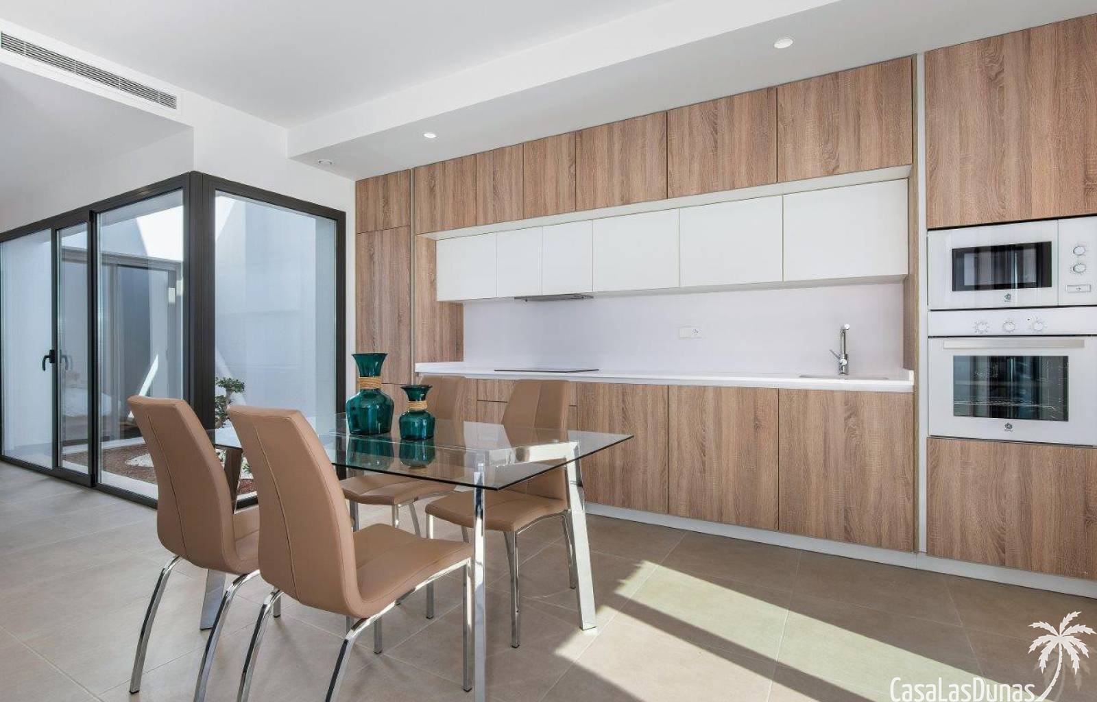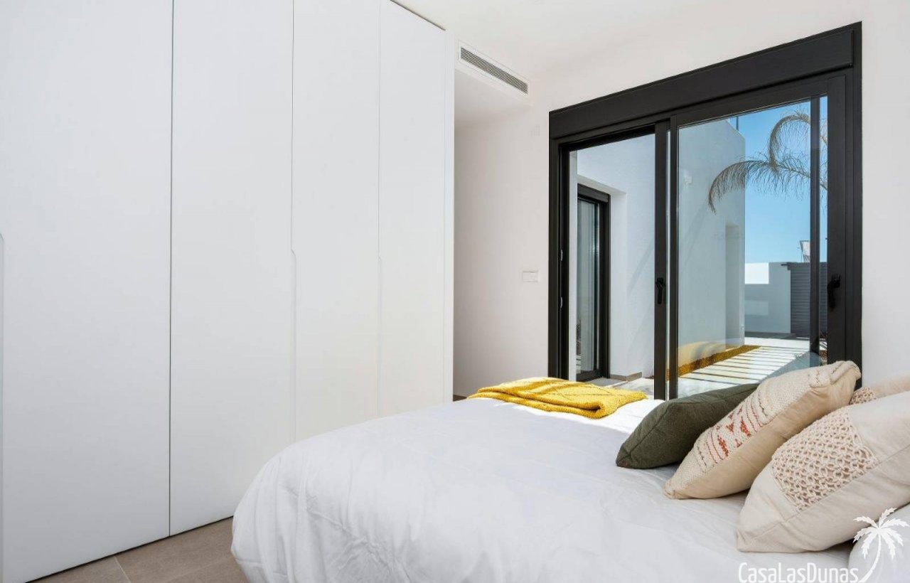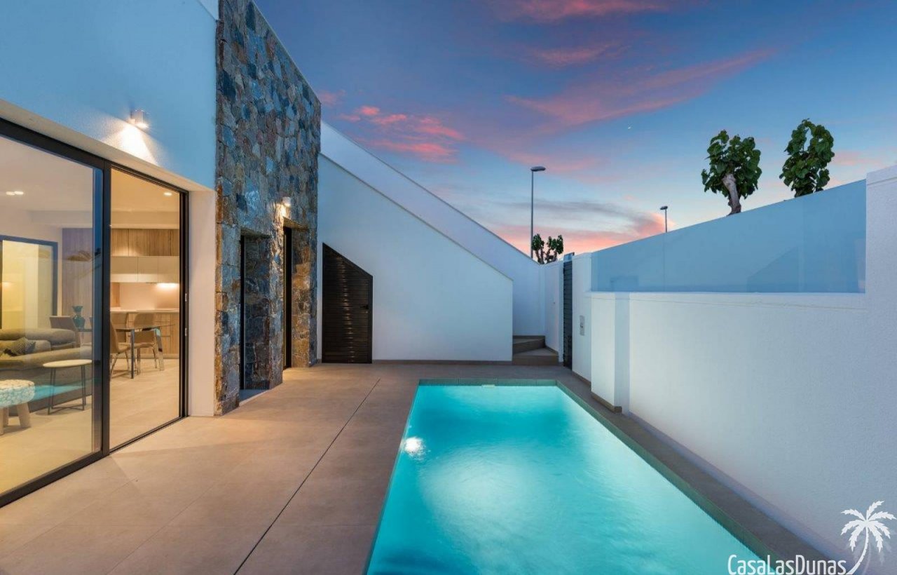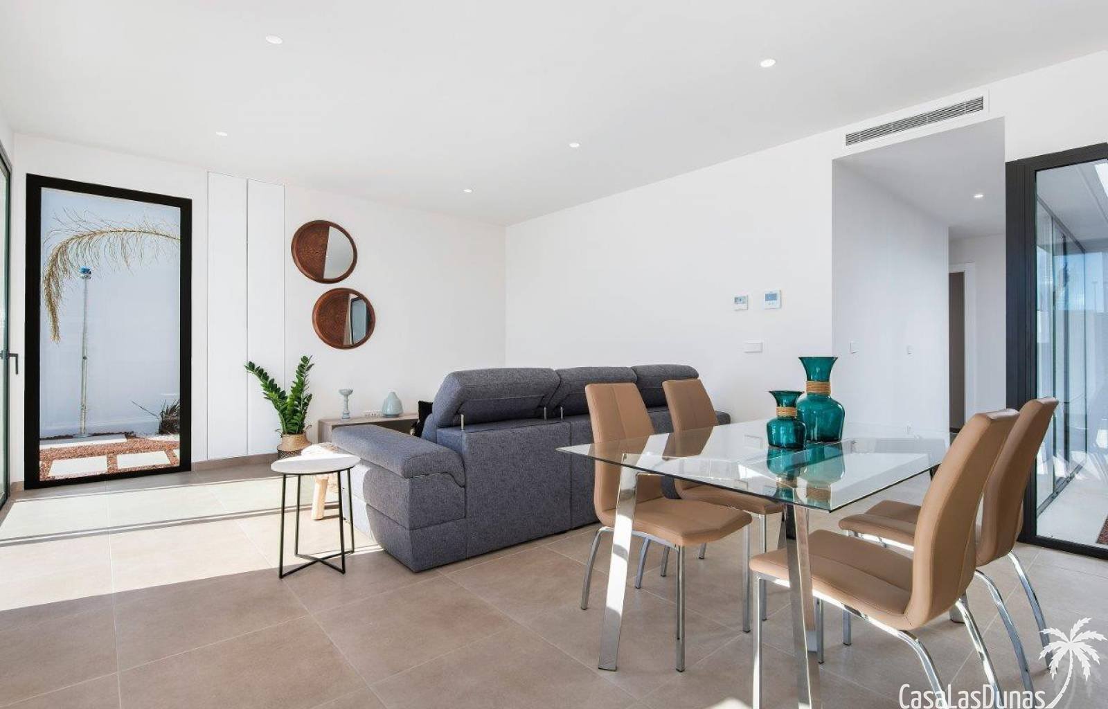Dieses moderne und erfolgreiche Projekt wird bereits phasenweise auf verschiedenen Grundstücken in der Stadt Pilar de la Horadada, sechs Kilometer von der Küste und den Salinas entfernt, umgesetzt. Mittlerweile befindet sich Phase VIII im Bau und innerhalb dieses Projekts haben Sie die Wahl zwischen 2 Arten von Doppelhaushälften, die in ein geräumiges Wohn-/Esszimmer mit offener Küche, zwei oder drei Schlafzimmer sowie zwei Badezimmer unterteilt sind. Die Häuser verfügen außerdem über eine große Dachterrasse, eine sonnige Gartenterrasse mit privatem Pool und Lagerraum auf einem Privatgrundstück zum Startpreis von 244.900 €. Das Haus ist aus hochwertigen Materialien gebaut und verfügt über Badezimmermöbel und Spiegel mit LED-Beleuchtung, Glasduschwände, LED-Innen- und Außenbeleuchtung sowie Vorinstallation einer Klimaanlage über ein Leitungssystem. Die Küche in glänzendem Weiß oder Holzfarbe ist komplett möbliert und ausgestattet mit Induktionskochfeld, Backofen, Mikrowelle, integriertem Kühlschrank und Dunstabzugshaube. Zu Fuß oder mit dem Fahrrad erreichen Sie alle notwendigen Einrichtungen und Annehmlichkeiten in den umliegenden Dörfern mit ihrer köstlichen spanischen Gastronomie. Planen Sie einen Besuch? Bitte kontaktieren Sie uns per E-Mail oder rufen Sie uns direkt an.