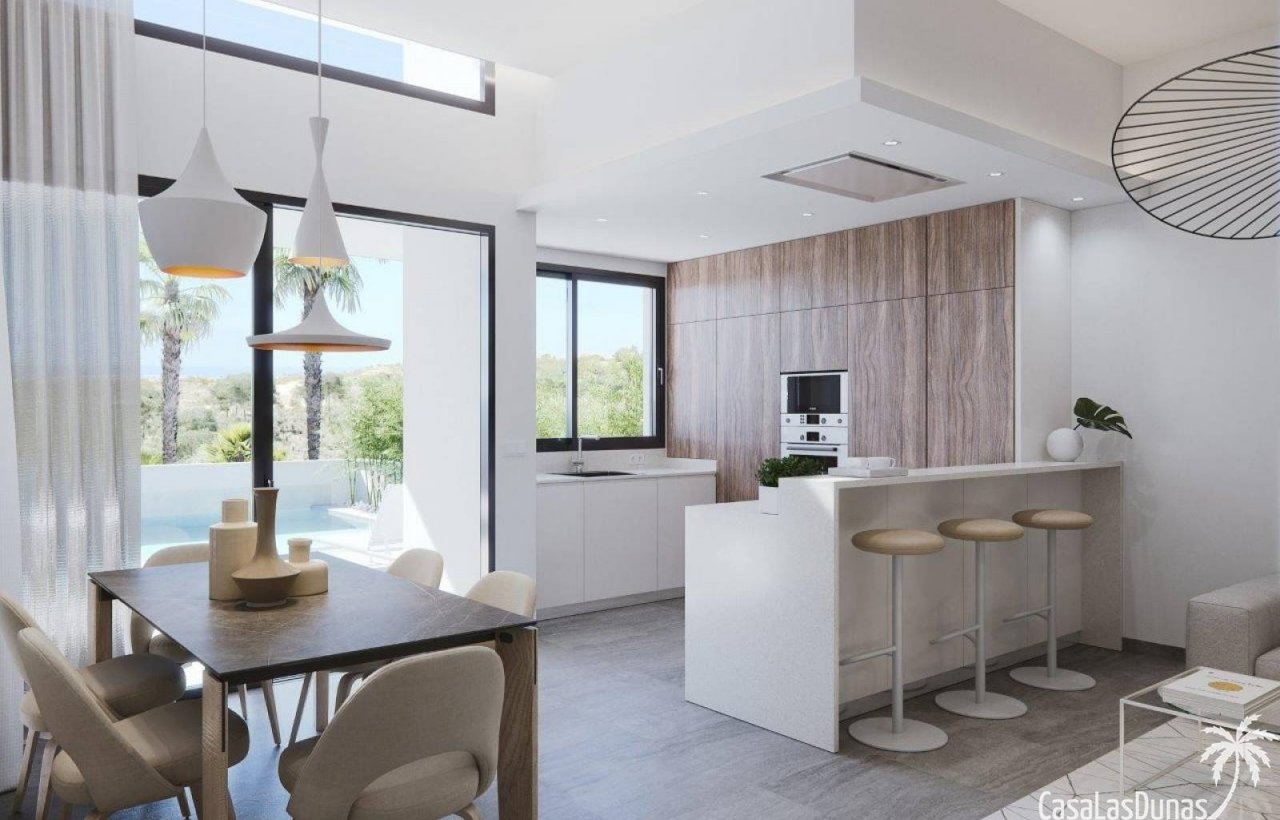 Schöne neue Villen in der Nähe von San Miguel de Salinas. Diese Häuser sind komplett ausgestattet und befinden sich auf einem großzügigen Grundstück ab 244 m2. Die Villen verfügen über 4 Schlafzimmer, 4 Badezimmer, eine offene Küche, die sich zum hellen Wohn-/Esszimmer und zum Swimmingpool hin öffnet. Draußen finden Sie eine (un)überdachte geflieste Terrasse mit privatem 3 x 5 m großen Swimmingpool und die Häuser verfügen außerdem über eine großzügige 33 m2 große Dachterrasse. Zu der genannten Wohnfläche gehört ein Keller, der Ihnen als zusätzliche Wohnetage (2 weitere Schlafzimmer, Badezimmer, Waschküche und Wohnzimmer) zur Verfügung gestellt wird. Diese moderne Villa wird mit Küchengeräten, Klimaanlage, Beleuchtung und elektrischen Rollläden im Wert von 14.900 € angeboten. Die Lieferung erfolgt im Dezember 2019! Kontaktieren Sie uns für weitere Informationen! Informationen zur Umgebung: San Miguel de Salinas ist ein charmantes spanisches Dorf in der Region Alicante, umgeben von wunderschönen Landschaften und Orangenhainen. Es ist bekannt für seine charmanten Plätze und authentischen Tapas-Bars. Mit einer Mischung aus spanischer Kultur und modernen Annehmlichkeiten bietet es sowohl Ruhe als auch Lebendigkeit, perfekt für Bewohner und Besucher.