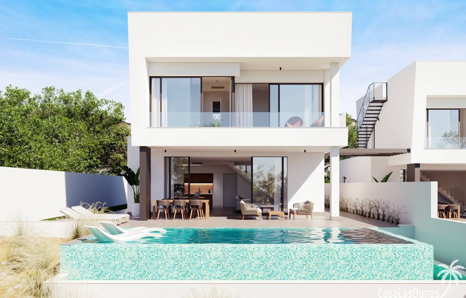 Diese Villen verfügen über ein helles und geräumiges Wohnzimmer mit offener Küche, die mit allen Geräten ausgestattet ist. Die Badezimmer sind komplett ausgestattet und verfügen über Fußbodenheizung. Eine Vorinstallation für eine Klimaanlage ist ebenso geplant wie LED-Beleuchtung und elektrische Rollläden. Der Garten ist mit Kunstrasen angelegt und verfügt über mehrere Terrassen. Ein privater Swimmingpool und ausreichend Parkplätze für mehrere Autos runden das Paket ab. Die Villen sind mit hochwertigen Materialien ausgestattet. Kontaktieren Sie uns für weitere Informationen!…