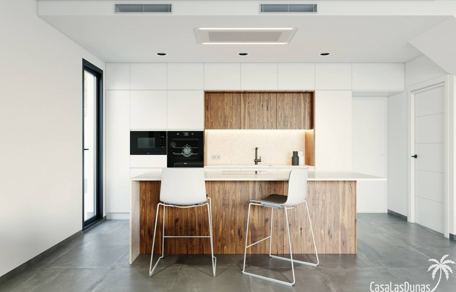 Diese Villen verfügen über ein helles und geräumiges Wohnzimmer mit offener Küche, die mit allen Geräten ausgestattet ist. Die Badezimmer sind komple