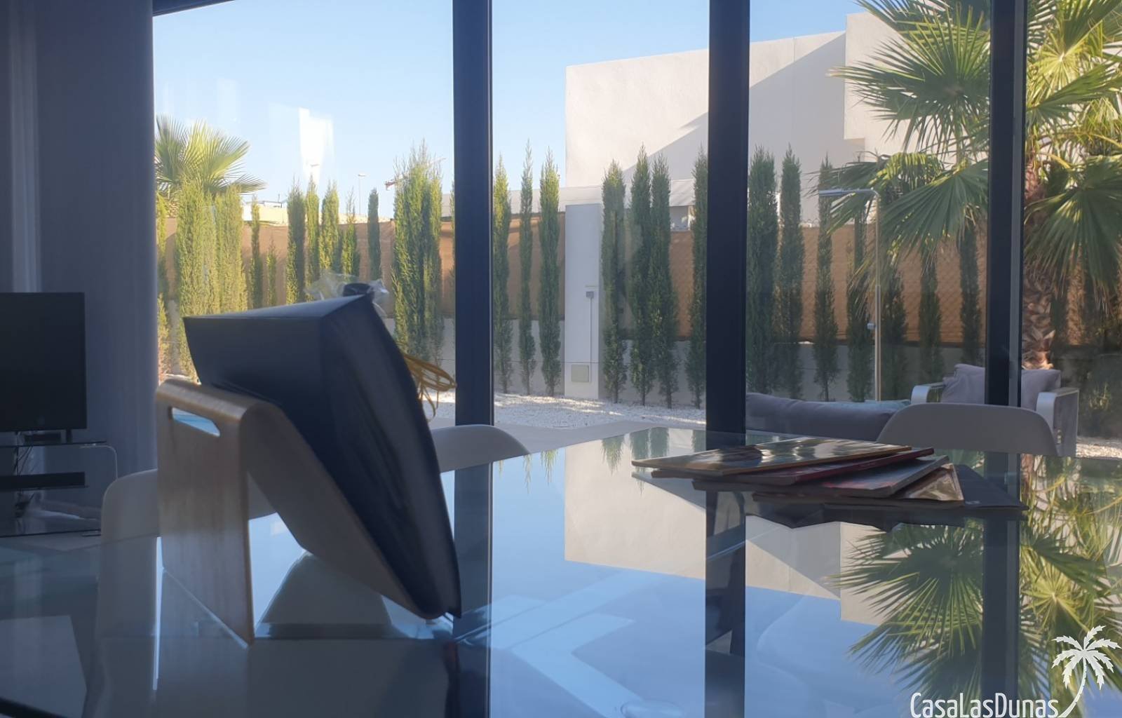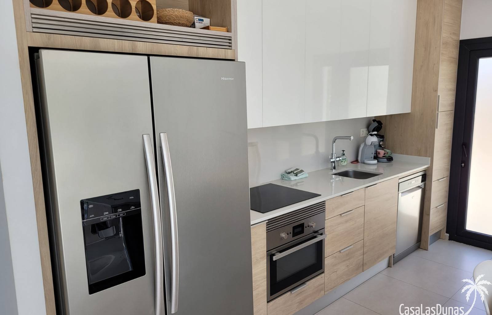 Die moderne Küche im amerikanischen Stil in La Perla Blanca ist mit hochwertigen Geräten ausgestattet, darunter ein amerikanischer Kühlschrank und mehrere Kaffeemaschinen, damit Sie jeden Morgen mit einer perfekten Tasse Kaffee beginnen können. Die Villa bietet nicht nur Luxus und Komfort, sondern auch eine strategisch günstige Lage in der Nähe zahlreicher Annehmlichkeiten. Supermärkte, Restaurants und Freizeiteinrichtungen sind bequem zu erreichen, sodass Sie alles, was die Gegend zu bieten hat, in vollen Zügen genießen können. Darüber hinaus ist der Flughafen Alicante nur 25 Minuten entfernt, was die Reiseplanung zum Kinderspiel macht.