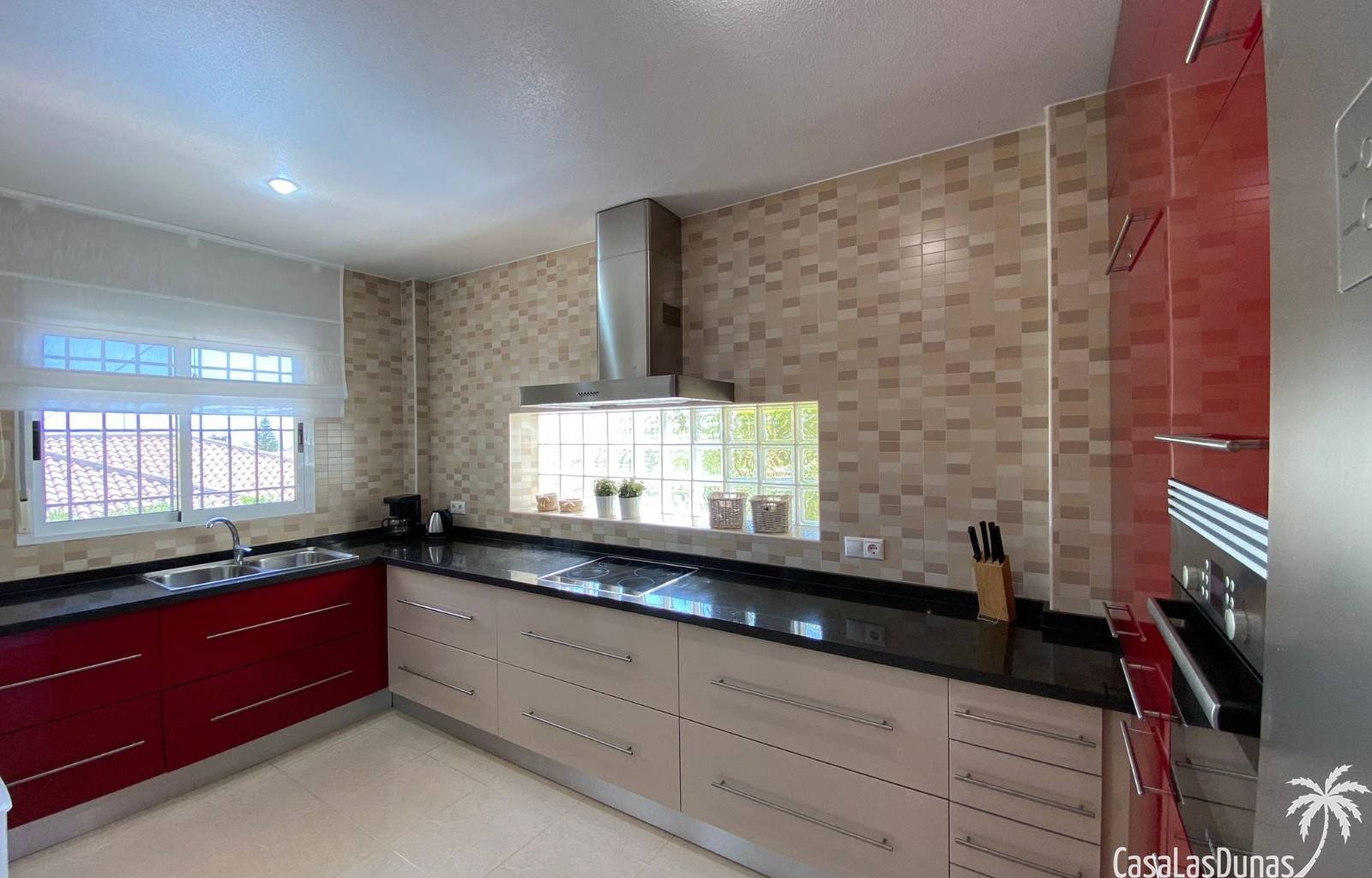 Zur Villa gehört außerdem ein separates Gästehaus mit Platz für bis zu acht Personen, eigener Küche, Wohnzimmer und zwei Schlafzimmern, das über einen separaten Eingang zugänglich ist. Für die Nutzung des Gästehauses wird eine zusätzliche Reinigungsgebühr von 225 € erhoben.