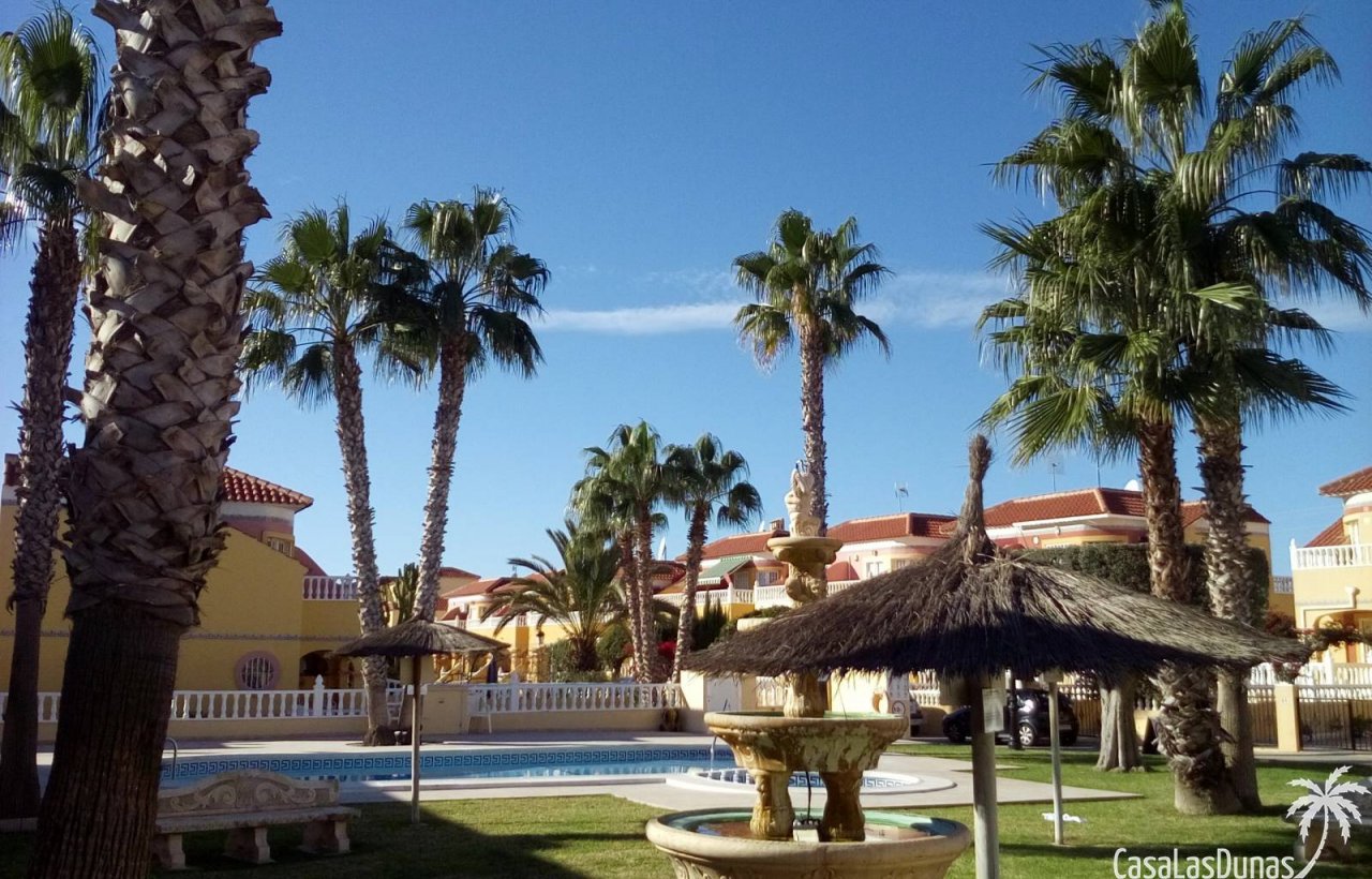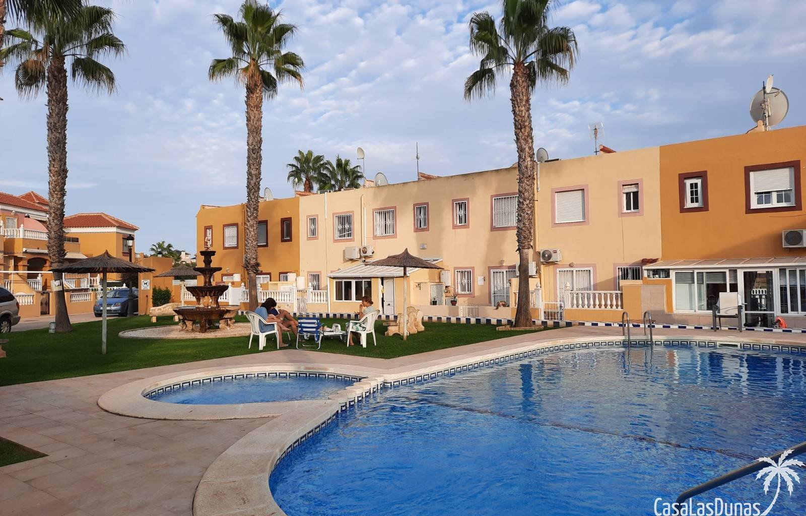 Dieses Haus verfügt in allen Zimmern über eine Warm- und Kaltklimaanlage. Durch den Anbau (wo sich ein zusätzliches Schlafsofa befindet, das dritte Schlafzimmer) gelangen Sie direkt in den schönen, gepflegten Gemeinschaftsgarten und über ein paar Stufen erreichen Sie einen der beiden Swimmingpools. Dieser umzäunte Garten ist nur den Bewohnern und Mietern dieser Wohnanlage zugänglich.