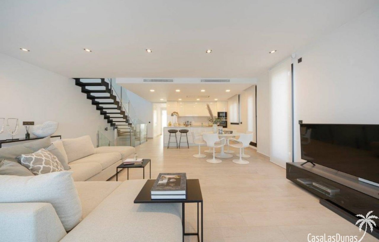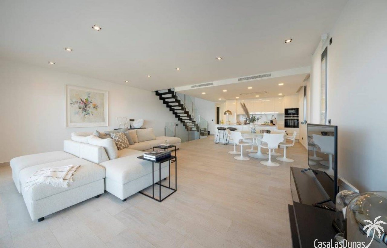 Die moderne Architektur der Villa, kombiniert mit eleganten und raffinierten Innenräumen, schafft eine einladende und entspannende Atmosphäre, in der Sie sich wie zu Hause fühlen werden. Der offene Grundriss und die großen Fenster sorgen für viel natürliches Licht, wodurch die Räume noch geräumiger und luftiger wirken. Ob Sie am privaten Swimmingpool entspannen, sich sonnen oder auf der großzügigen Dachterrasse einen erfrischenden Cocktail genießen und dabei den Sonnenuntergang beobachten möchten, für jeden ist etwas dabei.…