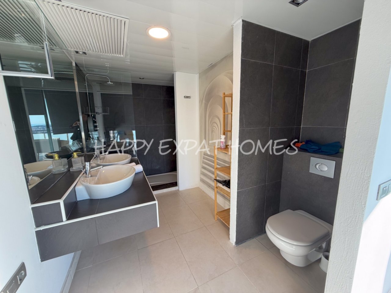 Gemeinschaftsbad mit Doppelduschen für die Schlafzimmer 1 und 2.