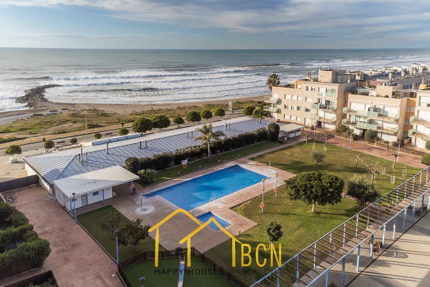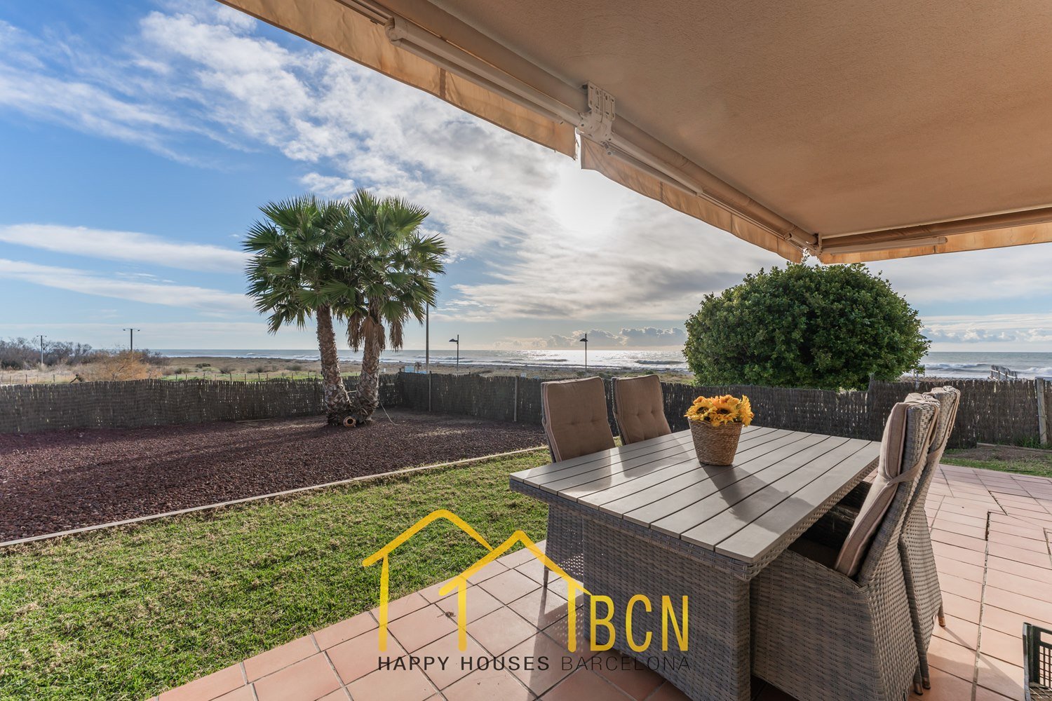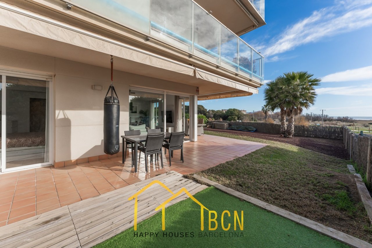Diese Wohnung mit vier Schlafzimmern hat eine Fläche von 122m2, zwei Badezimmer und einen privaten Garten von 377 m2. Außerdem gibt es eine private Tiefgarage mit einem weiteren Abstellraum. Es gibt über 3000 m2 Gemeinschaftsgelände, zu dem ein Pool von 9 x 19 Metern gehört. In der näheren Umgebung finden Sie den öffentlichen Strand, Restaurants und alle öffentlichen Einrichtungen wie Schulen, Bushaltestellen usw. Der Strand, auf den Sie einen Blick haben, wurde zum Naturschutzgebiet erklärt und ist daher nie von Menschen bewohnt. Vilanova ist eine 10minütige Fahrt entfernt, während der Flughafen Barcelona nur eine halbe Stunde entfernt ist.