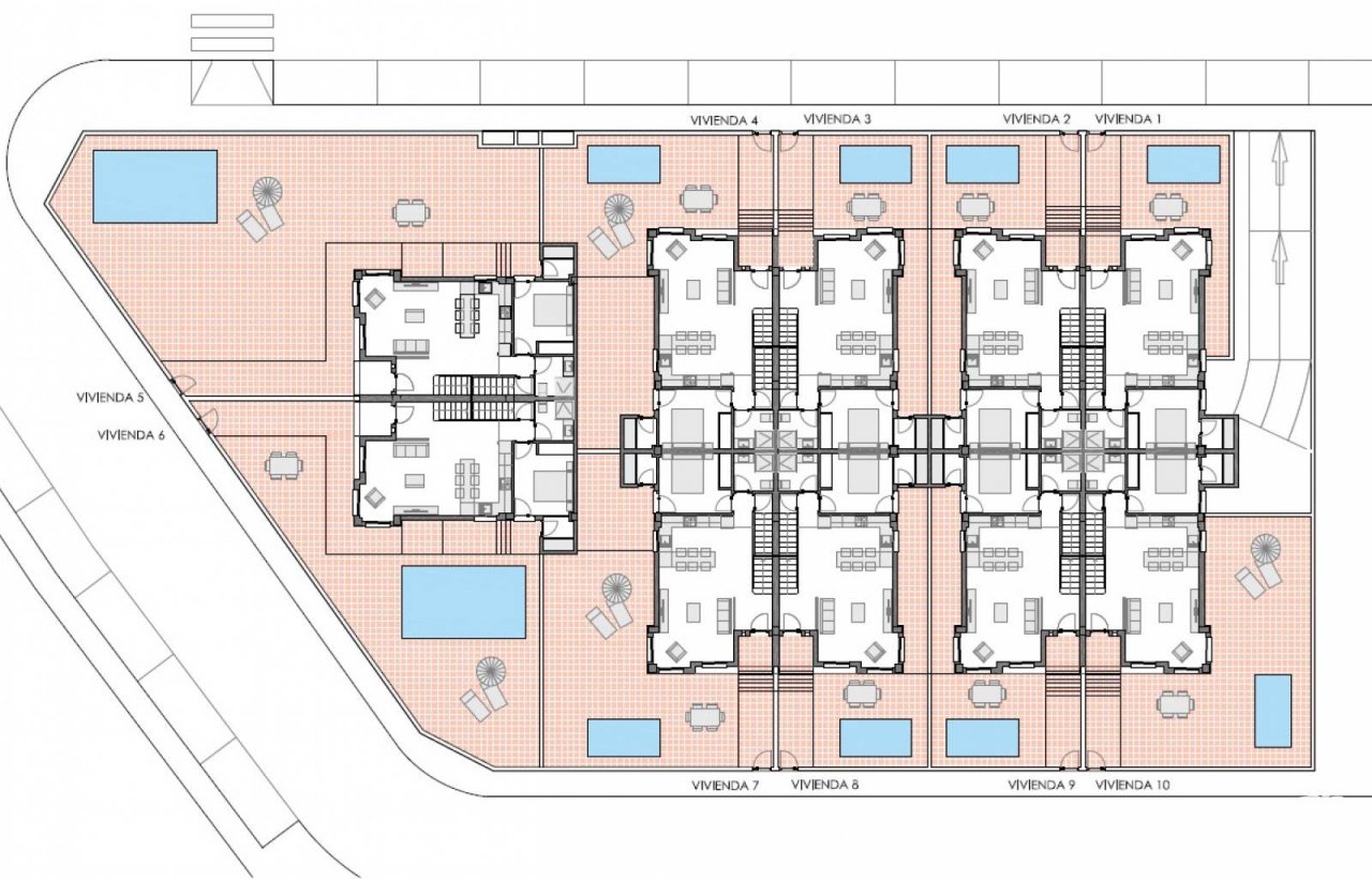 In dem relativ unbekannten Dorf Bigastro werden diese neuen Doppelhaushälften gebaut. Die geräumigen Häuser verfügen über nicht weniger als 4 Schlafzimmer und 3 Badezimmer, verteilt auf 2 Etagen. Unter dem Haus befindet sich der Keller, in dem sich eine Garage von mindestens 36 m² befindet. Die Gärten sind groß genug für einen privaten Swimmingpool, es gibt jedoch auch einen schönen Gemeinschaftspool. Und das Tüpfelchen auf dem i: Alle Häuser verfügen über eine private Dachterrasse mit kilometerweiter Aussicht. Kontaktieren Sie uns, um Ihren Besuch zu organisieren oder uns Ihre Fragen zu stellen.