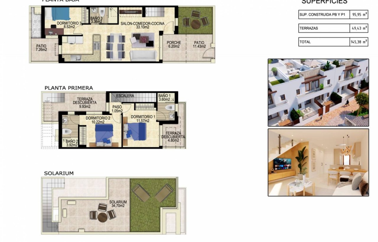 Im Vistabella Golf Resort wird derzeit am nächsten Neubau gearbeitet, der aus einstöckigen Reihenhäusern mit 2 Schlafzimmern (CLD-2916NB), zweistöckigen Reihenhäusern mit 3 Schlafzimmern (CLD-2916NBA) und freistehenden Häusern mit 4 Schlafzimmern (CLD-2916NBB) bestehen wird. Alle diese Typen zusammen bilden den Komplex, in dem ein gemeinschaftlicher Swimmingpool mit umliegenden Gärten für eine lebendige und angenehme Leseumgebung sorgt. Der Komplex liegt etwa 10 Kilometer von den Sandstränden der Orihuela Costa entfernt. Auch die Einrichtungen im Golfresort selbst sind sehr gut; Restaurants, Bars, Supermärkte, Apotheke und Sportgeschäft sind vorhanden. Vereinbaren Sie schnell einen Termin mit uns, um weitere Informationen zu erhalten oder einen Besichtigungstermin zu vereinbaren.