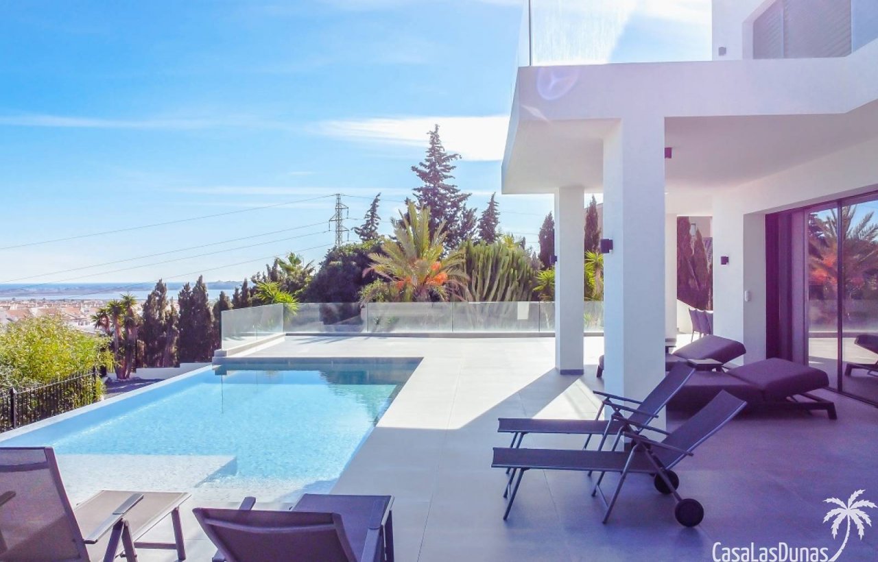 Moderne und luxuriöse Neubauvilla mit wunderschönem Meerblick in Ciudad Quesada und nur wenige Gehminuten von verschiedenen Einrichtungen wie Geschäften, Restaurants, Fitnessstudio usw. entfernt. Die Villa besteht aus 5 Schlafzimmern, 4 Badezimmern, einem Wohnzimmer, einem separaten Fernsehzimmer und einer offenen Küche. Für mögliche Gäste gibt es auch ein separates Apartment mit 2 Schlafzimmern. Darüber hinaus verfügt das Haus über einen beheizten Infinity-Pool, den Sie sowohl im Winter als auch im Sommer genießen können. Die Villa wird komplett möbliert verkauft. Wenn Sie an diesem Projekt interessiert sind und weitere Informationen wünschen, zögern Sie nicht, uns zu kontaktieren.