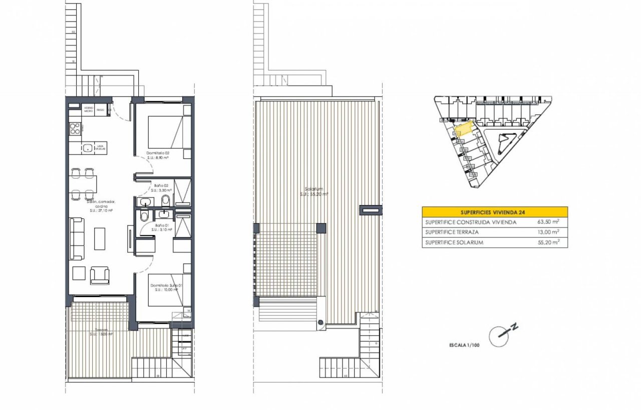 Diese wunderschönen modernen Apartments werden derzeit im charmanten spanischen Dorf San Fulgencio gebaut. Zur Auswahl stehen zwei Modelle: Erdgeschosswohnungen mit privater Terrasse und Garten sowie Obergeschosswohnungen mit Balkon und privater Dachterrasse. Alle Einheiten verfügen über zwei Schlafzimmer und zwei Bäder und bieten 63,5 m² Wohnfläche. Die Terrassen sind ca. 25 m² groß und bieten großzügig Platz, um die spanische Sonne zu genießen! Der Komplex wird auch über einen Gemeinschaftspool verfügen.