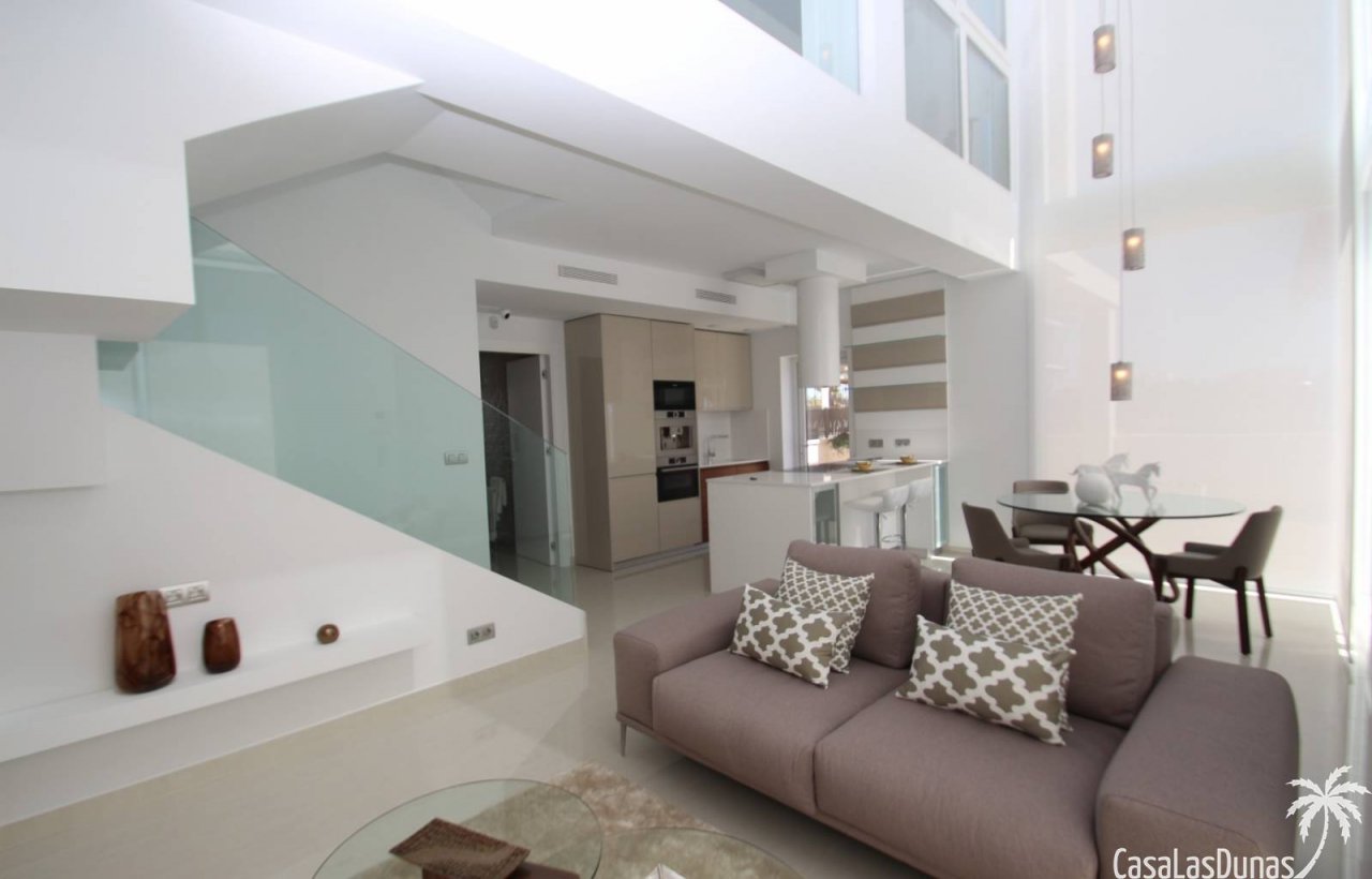 2 wunderschöne Villen mit privatem Pool auf einem Grundstück von nicht weniger als 440 m2. Für einen besonders schönen Effekt verfügt das Haus über einen Hohlraum mit hohen Decken. Die geräumige Küche, das Wohnzimmer, 3 Schlafzimmer und 3 Badezimmer runden das Paket ab. Das Hauptschlafzimmer verfügt über ein großes Badezimmer mit einer geräumigen ebenerdigen Dusche und einer Badewanne, von der aus Sie fernsehen können. Draußen können Sie das Schwimmbad mit Wasserfall nutzen, wo Sie auf der im Becken eingebauten Bank sitzen können. Oder gehen Sie auf die große Dachterrasse mit Außenküche hinter dem elektrischen Rollladen. Mit anderen Worten: Maximale Entspannung drinnen oder draußen in dieser luxuriös ausgestatteten Villa. Möchten Sie weitere Informationen zu dieser wunderschönen Villa? Kontaktieren Sie uns also kostenlos und unverbindlich!