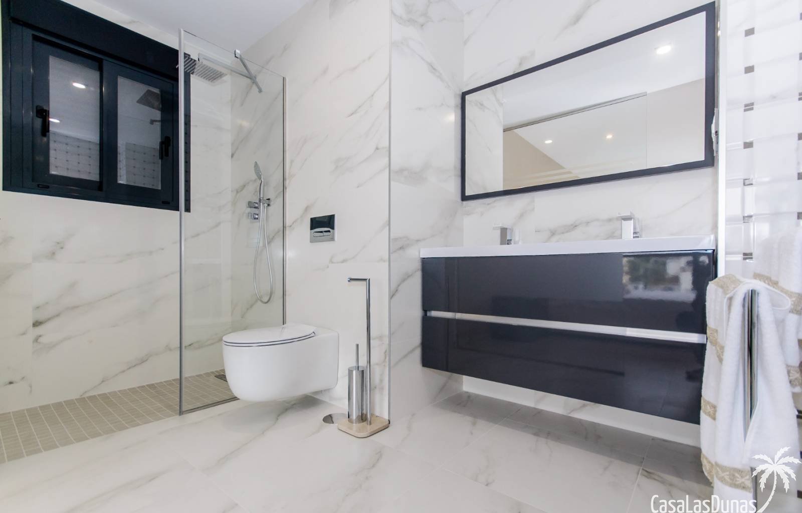 Neben dieser wunderschönen Villa ist La Manga del Mar Menor natürlich für seine einzigartige Lage an der Küste bekannt. La Manga del Mar Menor ist vom Meer umgeben. Dieser wunderschöne Ort überquert das Meer und bildet einen echten Damm. Dies macht es zu einem wunderbaren Badeplatz ohne große Wellen oder starke Strömungen. Da es zahlreiche Strände in der Nähe gibt, gibt es immer genug Platz, um sich einen eigenen Platz am Strand zu sichern.
