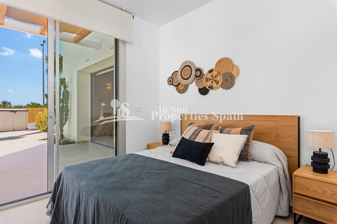 NEUBAU VILLEN IN BENIJOFAR Neubau einer Wohnanlage mit Villen in Benijofar. Neubau Villen im modernen Stil mit offener Küche und Wohnbereich, 3 Schlafzimmer, 2 Bäder, privates Grundstück mit Terrasse, Parkplatz und privatem Pool, Garten und eine wunderbare Sonnenterrasse mit herrlichem Blick.  Benijofar ist ein hübsches Dorf mit einer charmanten Kirche und einem attraktiven Platz im Landesinneren der südlichen Costa Blanca, in der Nähe der Touristenorte Guardamar del Segura und Torrevieja. Benijofar ist auch ein beliebter Aufenthaltsort für die Sommerferien, da es nahe genug an den Küstenorten liegt und dennoch ruhig genug ist, um sich von allem zu erholen. Es gibt mehrere Golfplätze in der Nähe sowie Wasserparks im nahe gelegenen Rojales und Torrevieja. Die nächstgelegenen und besten Strände von Benijofar sind etwa fünfzehn Autominuten entfernt und gehören zu den besten Stränden der südlichen Costa Blanca, in Guardamar del Segura und Torrevieja. Von Benijofar aus verkehren auch regelmäßig Busse nach Guardamar del Segura und Torrevieja, von wo aus die Strände leicht zu erreichen sind. 20 Minuten Fahrt zum Flughafen Alicante mit regelmäßigen Flügen in ganz Europa.