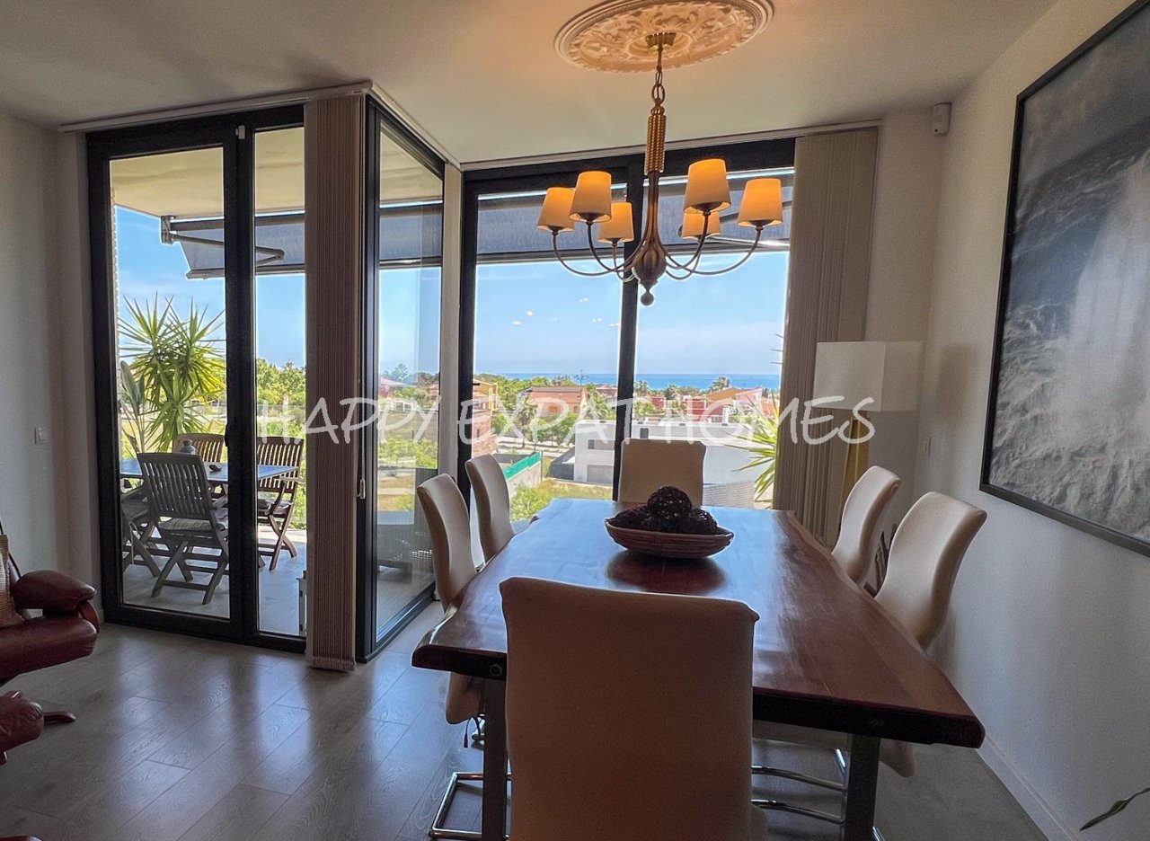 Beim Betreten führt ein geräumiger Flur in einen sehr gemütlichen Tagesbereich: ein Wohnzimmer mit Essbereich (27 m²) mit viel natürlichem Licht, von dem aus Sie auf eine angenehme 14 m² große Terrasse mit freiem Blick auf das Meer, die Pools und den Gemeinschaftsgarten gelangen, die perfekt ist, um die Nachmittage das ganze Jahr über zu genießen.…