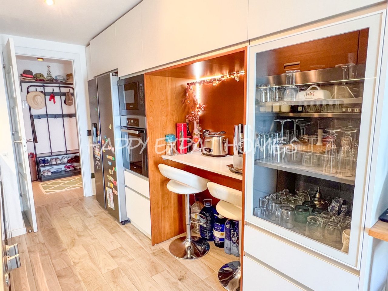 Die Küche ist einzigartig: Es handelt sich um eine Profiküche, ausgestattet mit hochwertigen Geräten (Miele, Gaggenau, Arclinea by Sholtès), einer Edelstahlarbeitsplatte und einer Teppanyaki-Platte sowie direktem Zugang zu einem sehr funktionalen Balkon mit Waschbereich.