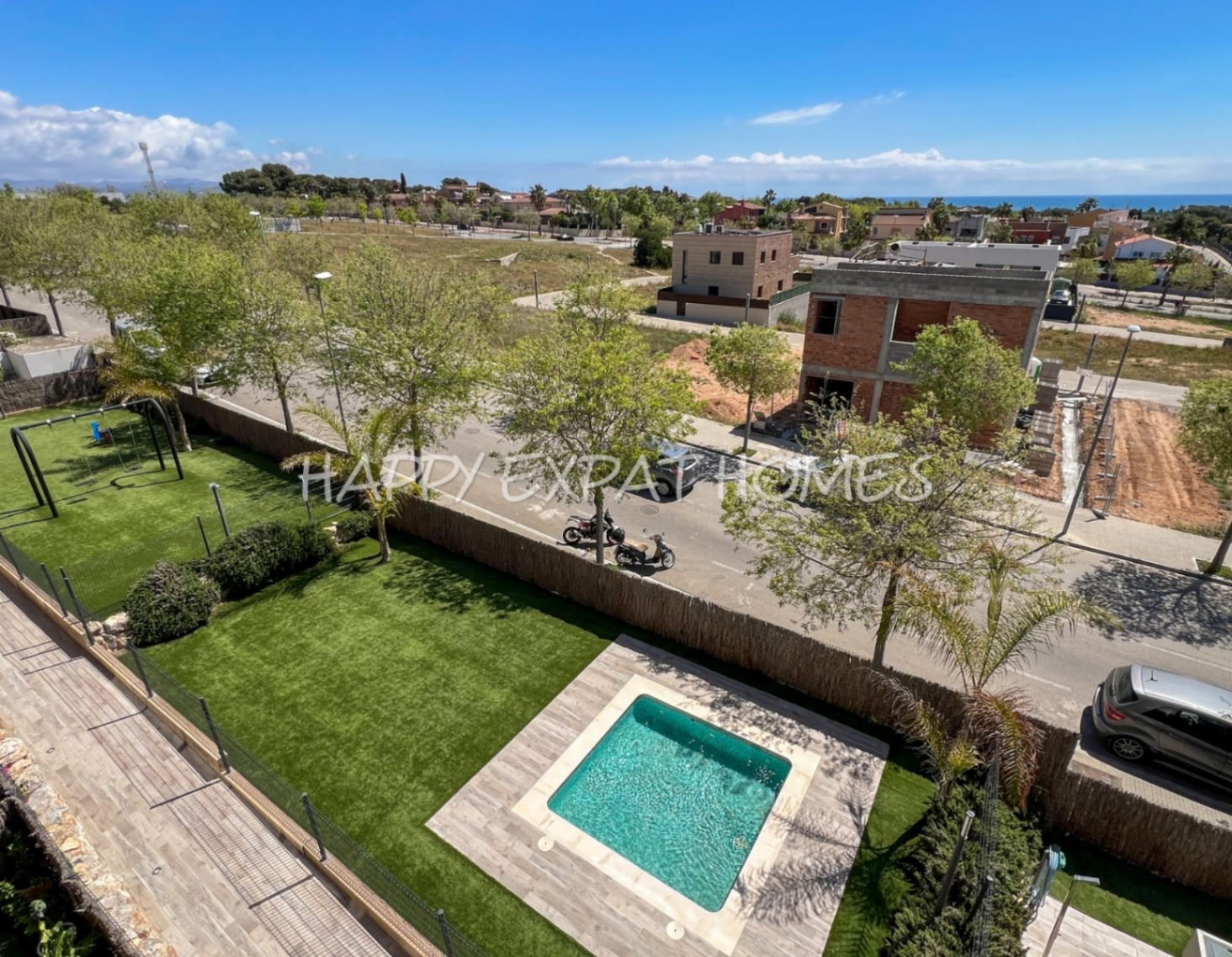 Die Gemeinschaft bietet zwei Schwimmbäder (eins für Kinder), große Gartenbereiche, einen Spielbereich für Kinder mit Schaukeln und einen im Preis inbegriffenen Parkplatz.