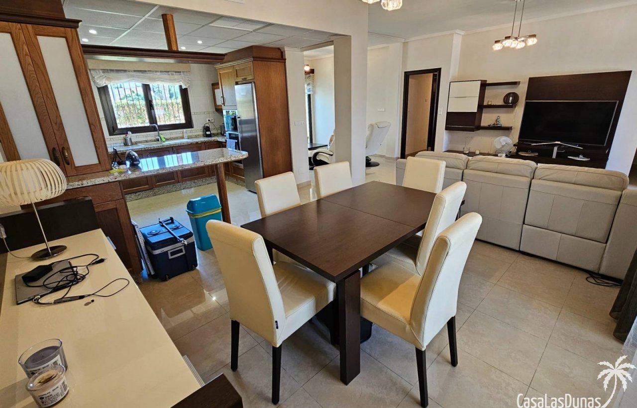 Wir sind stolz, Ihnen diese prächtige, perfekt gepflegte traditionelle spanische Villa anbieten zu können, die in einer prestigeträchtigen Gegend der stets geschäftigen Ciudad Quesada liegt. Es wurde 2008 erbaut und von den Eigentümern einst als Zweitwohnsitz genutzt, was seinen nahezu neuwertigen Zustand erklärt. Das Erdgeschoss umfasst einen großen offenen Raum, in dem sich das Wohnzimmer, das Esszimmer und die amerikanische Küche befinden. Auf dieser Etage befinden sich außerdem drei Schlafzimmer und zwei Badezimmer. Die Dachterrasse ist über eine Außentreppe erreichbar. Von hier aus genießen Sie einen herrlichen Blick auf die Region und sogar auf die Lagune von La Mata. Auf der Dachterrasse finden Sie ein weiteres Schlafzimmer und ein Badezimmer. Die Villa befindet sich auf einem 629 m² großen Grundstück, auf dem Sie eine überdachte Außenküche, einen privaten nierenförmigen Swimmingpool und einen Carport finden.…