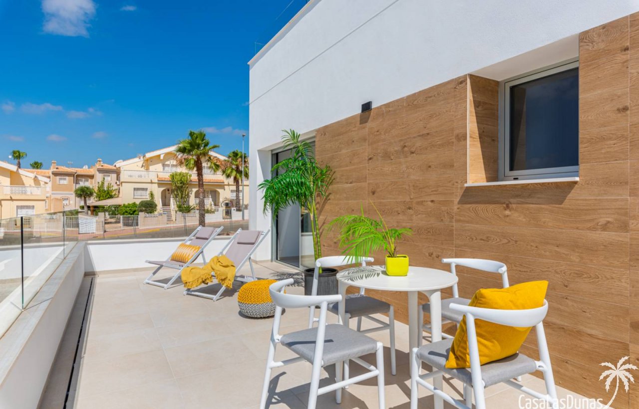 Diese exzellenten modernen Villen verfügen über große Grundstücke und eine gute Lage in Ciudad Quesada. Es gibt nur noch drei Villen in der Urbanisation, die alle nach hohen Standards und in sehr guter Qualität gebaut wurden. Die Villen sind auf Grundstücken von 380 bis 500 m² gebaut und verteilen sich auf zwei Etagen. Im Erdgeschoss befindet sich ein geräumiges und helles Wohnzimmer mit Küchenzeile, ein großes Schlafzimmer mit Schrank und ein Badezimmer. Zwei der Schlafzimmer haben Zugang zu einer sonnigen Terrasse mit viel Platz für Liegestühle oder Gartenmöbel. Im Obergeschoss ist die riesige 80 m2 große Dachterrasse für eine Außenküche, einen Grill, einen Whirlpool, eine Dusche und Gartenmöbel vorbereitet. Von hier aus genießen Sie die beeindruckende Aussicht auf die Umgebung und den Salzsee von Torrevieja.