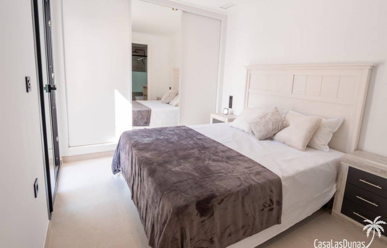 Im Herzen der Wohnanlage La Marina, in einer ruhigen Gegend, liegt dieses neue Projekt mit 15 freistehenden Villen und Doppelhaushälften. Alle Häuser bieten eine Wohnfläche von 100 m² und stehen auf Grundstücken von mindestens 246 m². Der Garten mit Swimmingpool und zahlreichen Terrassen ist großzügig angelegt. Die Häuser verfügen über eine Dachterrasse von mindestens 100 m². Dieses Projekt ist sehr umfassend. Im Standardpreis enthalten sind außerdem: ein privater 6 x 2,5 Meter großer Swimmingpool, Sonnenkollektoren, Klimaanlage, Innen- und Außenbeleuchtung, elektrische Rollläden, Badezimmer mit Duschwänden und eine voll ausgestattete Küche mit Dunstabzugshaube und Wasseraufbereitungssystem. Fehlen nur noch eine Waschküche und Möbel! CasaLasDunas bietet den ersten 5 Käufern dieses Projekts derzeit ein Einführungsangebot. Einzelheiten zu diesem Sonderangebot werden bei einem Besuch in La Marina bekannt gegeben. Kontaktieren Sie uns für weitere Informationen!…