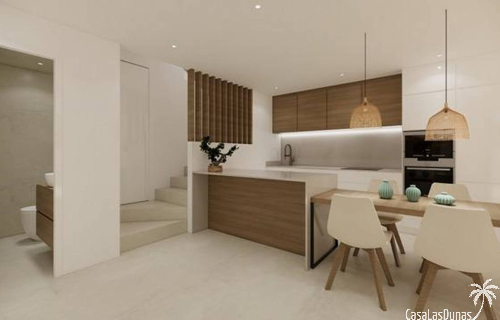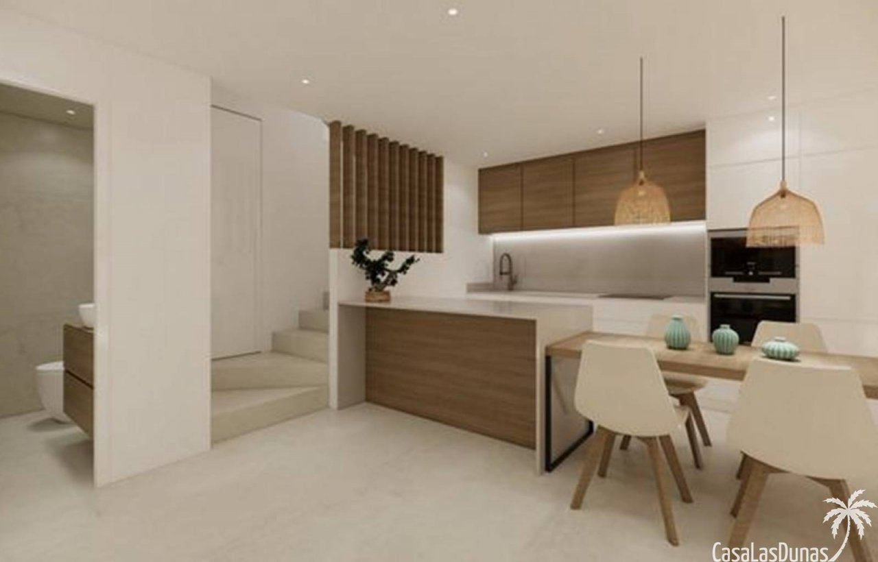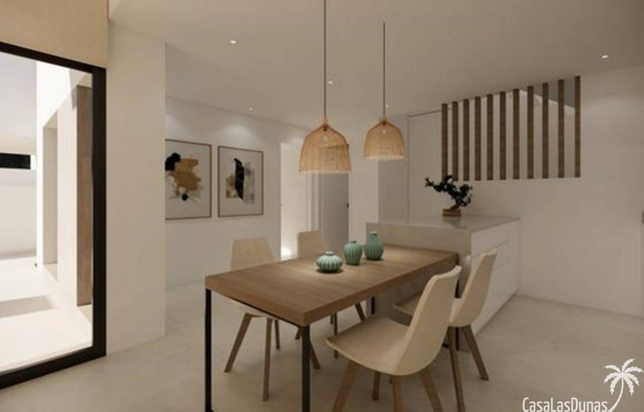 Entdecken Sie dieses exklusive Neubauprojekt mit sieben modernen, individuellen Villen in San Fulgencio. Diese Häuser sind in einem modernen Stil gestaltet und nach Süden ausgerichtet, um die Sonne optimal zu nutzen. Die Villen erstrecken sich über zwei Etagen und profitieren von einer guten Raumaufteilung. Es gibt drei geräumige Schlafzimmer, eines davon im Erdgeschoss. Es gibt zwei Badezimmer und eine zusätzliche Toilette. Die offene Küche ist mit integrierten Geräten ausgestattet.