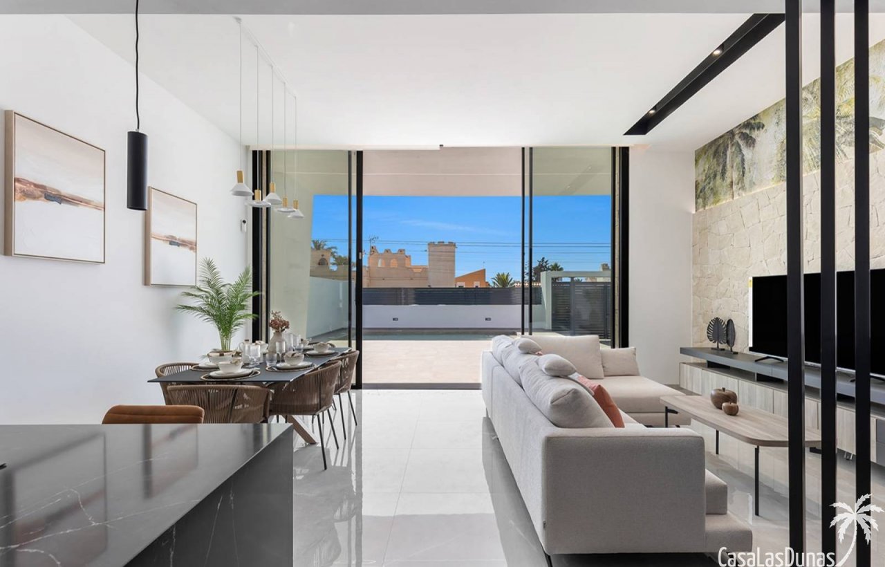 Tauchen Sie ein in eine Welt voller Komfort und Eleganz mit diesen neuen Villen in Los Balcones, Torrevieja. In einer ruhigen und exklusiven Gegend gelegen, verkörpern diese Villen moderne Architektur und mediterranen Charme. Zwei identische Villen stehen zur Verfügung. Diese bietet einen größeren Wohnbereich und bietet Ihnen zusätzlichen Platz, ohne auf Stil und Komfort verzichten zu müssen. Sie ist der ideale Rückzugsort für alle, die Ruhe suchen und dennoch nahe am geschäftigen Treiben der Stadt sein möchten.