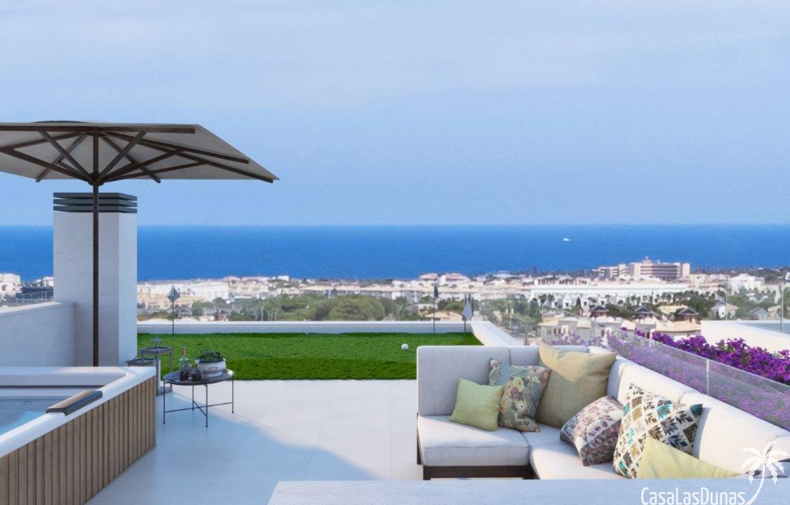 Die Villa befindet sich in Lomas de Don Juan in Orihuela Costa. In nur 5 Minuten erreichen Sie die Strände von La Zenia, Cala Capitan, Cabo Roig oder Campo Amor sowie das berühmte Einkaufszentrum Zenia Boulevard. Innerhalb von 10 Minuten erreichen Sie die Golfplätze Villamartin, Las Ramblas, Campoamor und Las Colinas. 15 weitere Golfplätze im Umkreis von 20 Autominuten.