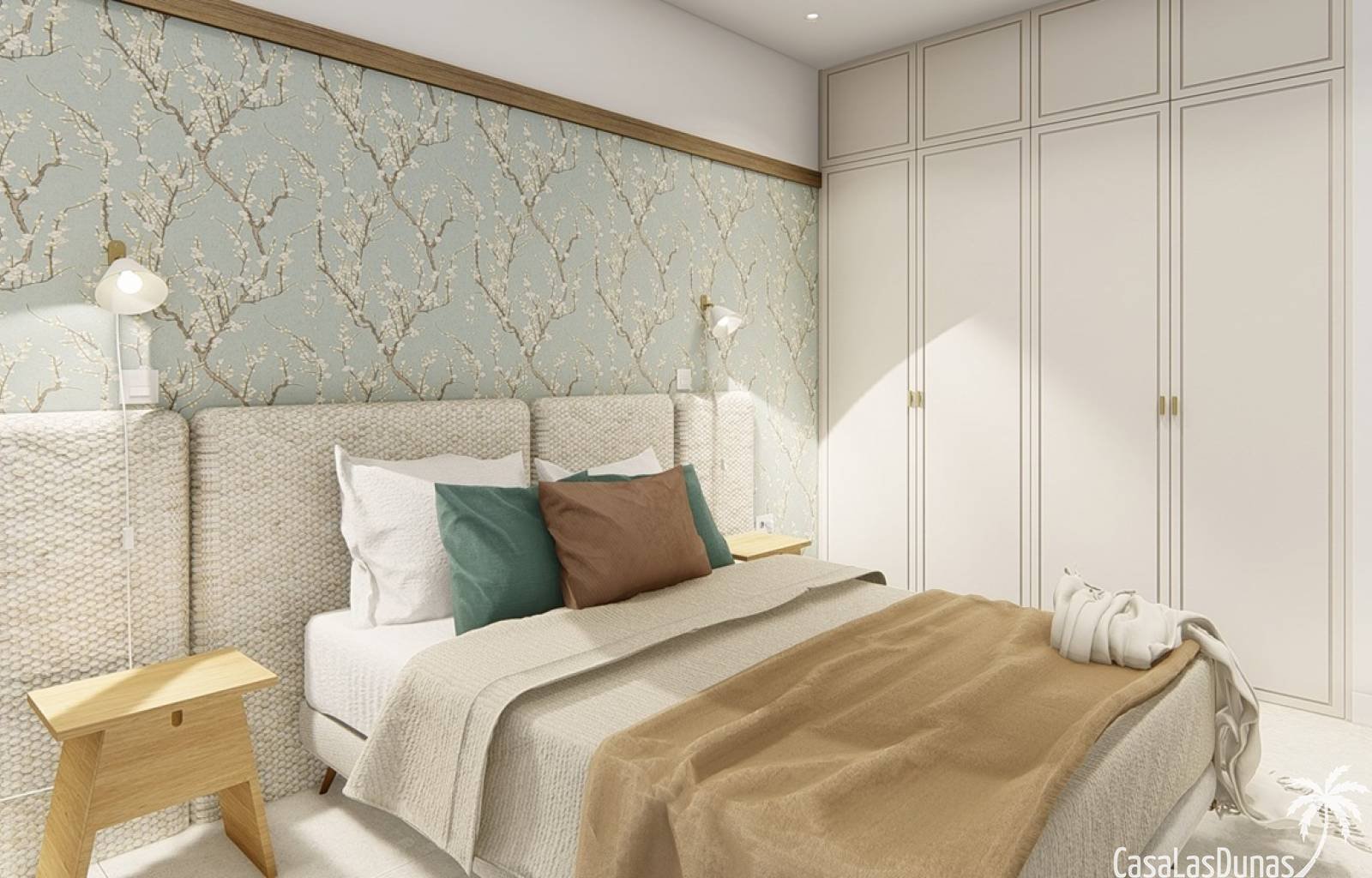 Jede Villa ist auf Platz, Licht und Komfort ausgelegt. Das Erdgeschoss besteht aus einem offenen Wohnbereich mit direktem Zugang zum Garten, wo sich ein privater Pool und ein Parkplatz befinden. Die offene Küche geht nahtlos in den Wohn- und Essbereich über. Außerdem gibt es ein Gäste-WC mit Fußbodenheizung und einer Glasduschkabine.