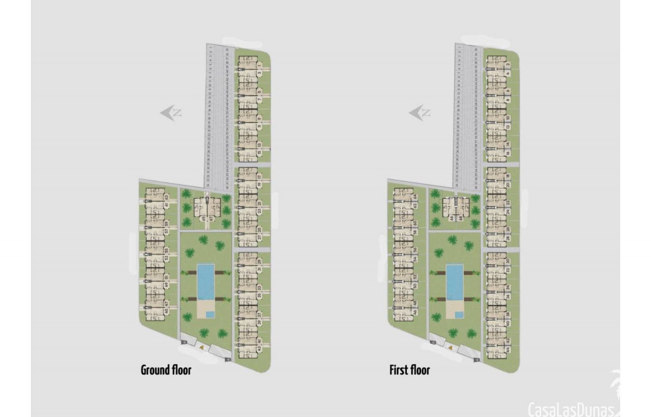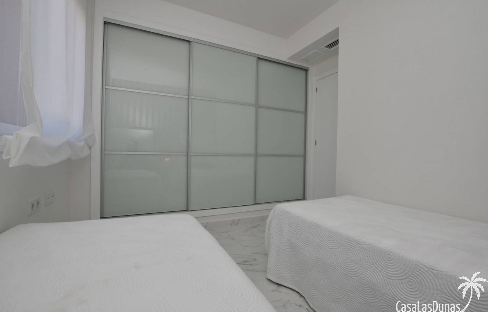 Die Apartments sind geräumig und hell und verfügen über ein offenes Wohnzimmer, eine moderne Küche, zwei komfortable Schlafzimmer mit Einbauschränken und zwei voll ausgestattete Badezimmer. Jedes Apartment verfügt über einen privaten Garten mit direktem Zugang zum wunderschön angelegten Gemeinschaftsgarten mit Swimmingpool. Ideal, um das mediterrane Klima das ganze Jahr über zu genießen.