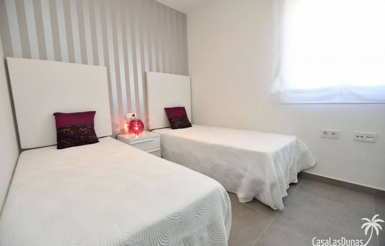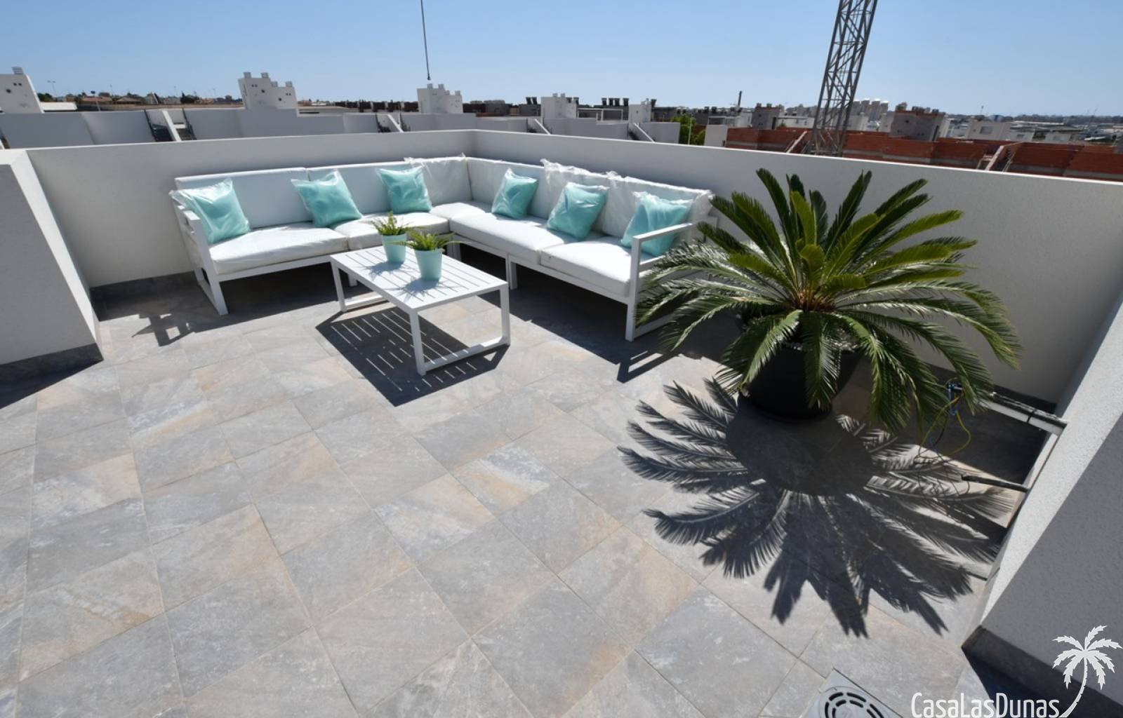 Diese elegante, neu gebaute Dachgeschosswohnung befindet sich im ruhigen und grünen Viertel La Cañada, etwas außerhalb des geschäftigen Dorfzentrums von San Miguel de Salinas. Die Lage ist ideal: nur einen Steinwurf von charmanten Restaurants, Supermärkten, mehreren Golfplätzen und den weitläufigen Sandstränden von Orihuela Costa entfernt.